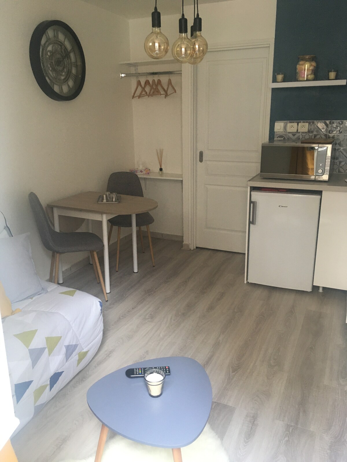 Discover Le Petit Bleu, a cocooning studio decorated in a bohemian style.