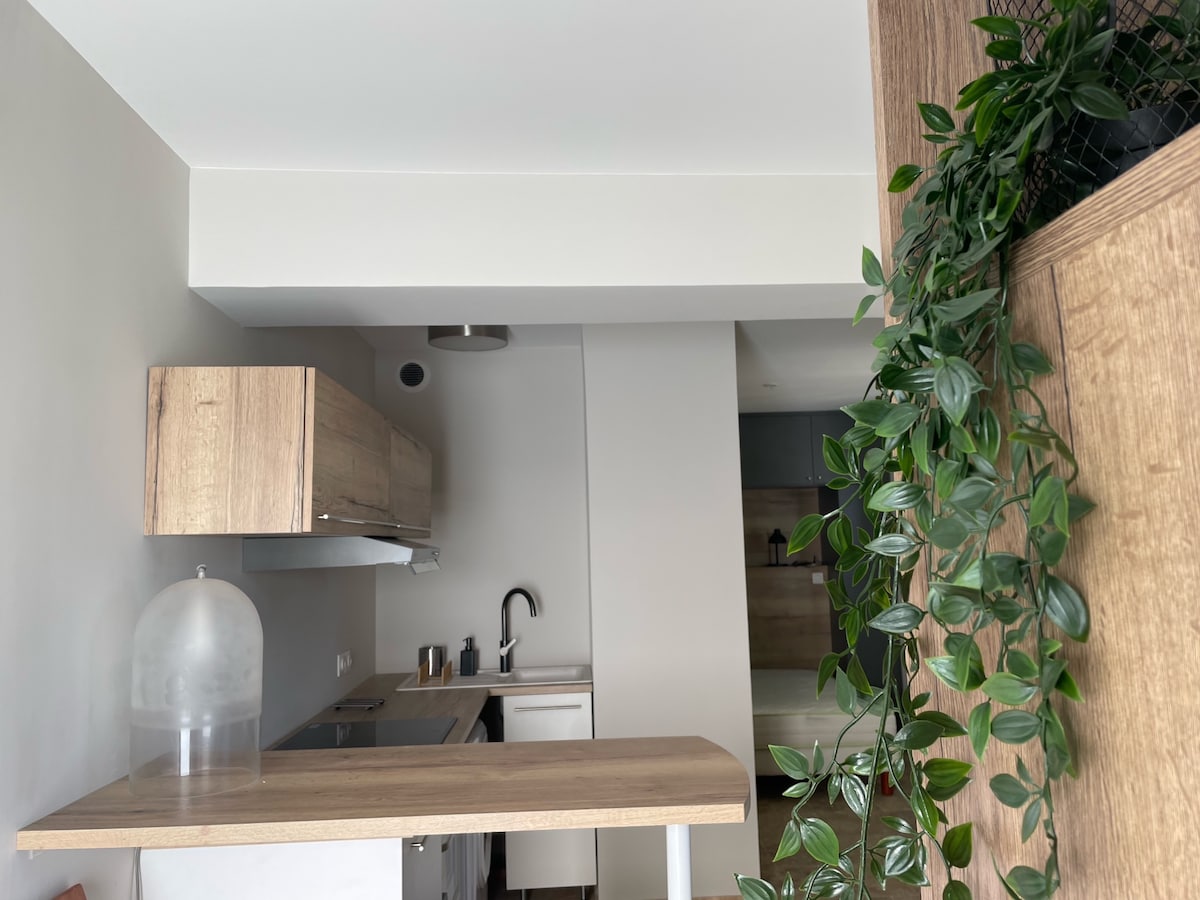 Studio named " thyme" with air conditioning located 5min from the train station and 10min walk from the city center.