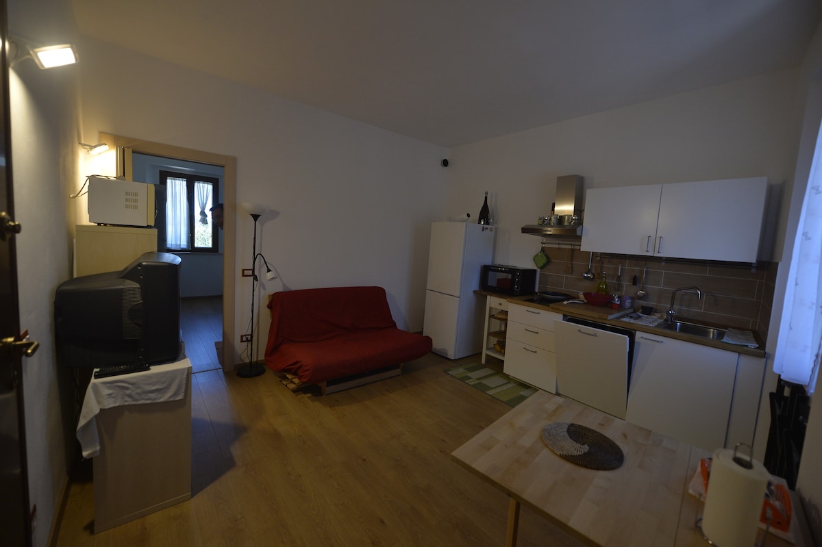 The room is located in an apartment for which you have a living room with flat-screen TV, sofa plus kitchen for breakfast but, if desired, you can have full use of the kitchen equipped with a fridge and dryer, dishwasher, gas and oven with an addition of price.