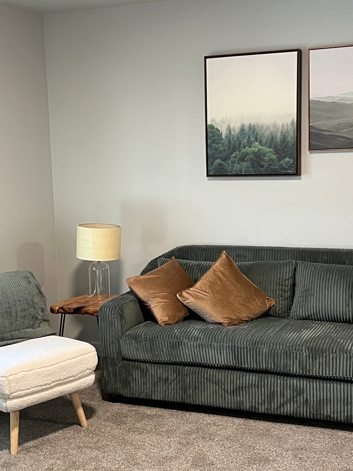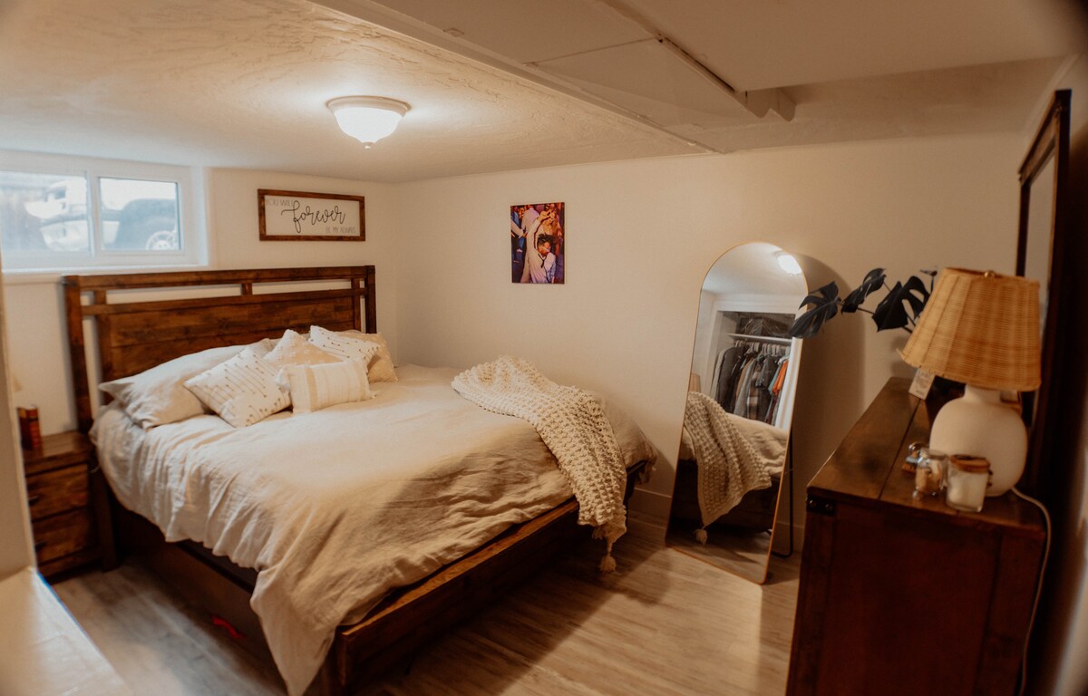 Relive your college days in style! Our newly renovated basement hideaway offers nostalgia and comfort. With a heated king-sized bed, huge couch, 65in flat screen TV, full kitchen, private laundry, you're set for a cozy retreat. Make new memories in this charming space!