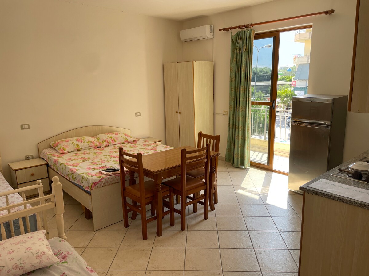 Απολαύστε μια ήσυχη και άνετη διαμονή σε ένα οικογενειακό περιβάλλον, μόλις 800 μέτρα από την παραλία – μια ευχάριστη διαδρομή 7-10 λεπτών με τα πόδια ή 2 λεπτών με το αυτοκίνητο. Τα διαμερίσματά μας είναι ιδανικά για ζευγάρια, οικογένειες και παρέες που επιθυμούν να χαλαρώσουν και να εξερευνήσουν τις φυσικές ομορφιές της Αλβανικής Ριβιέρας.
