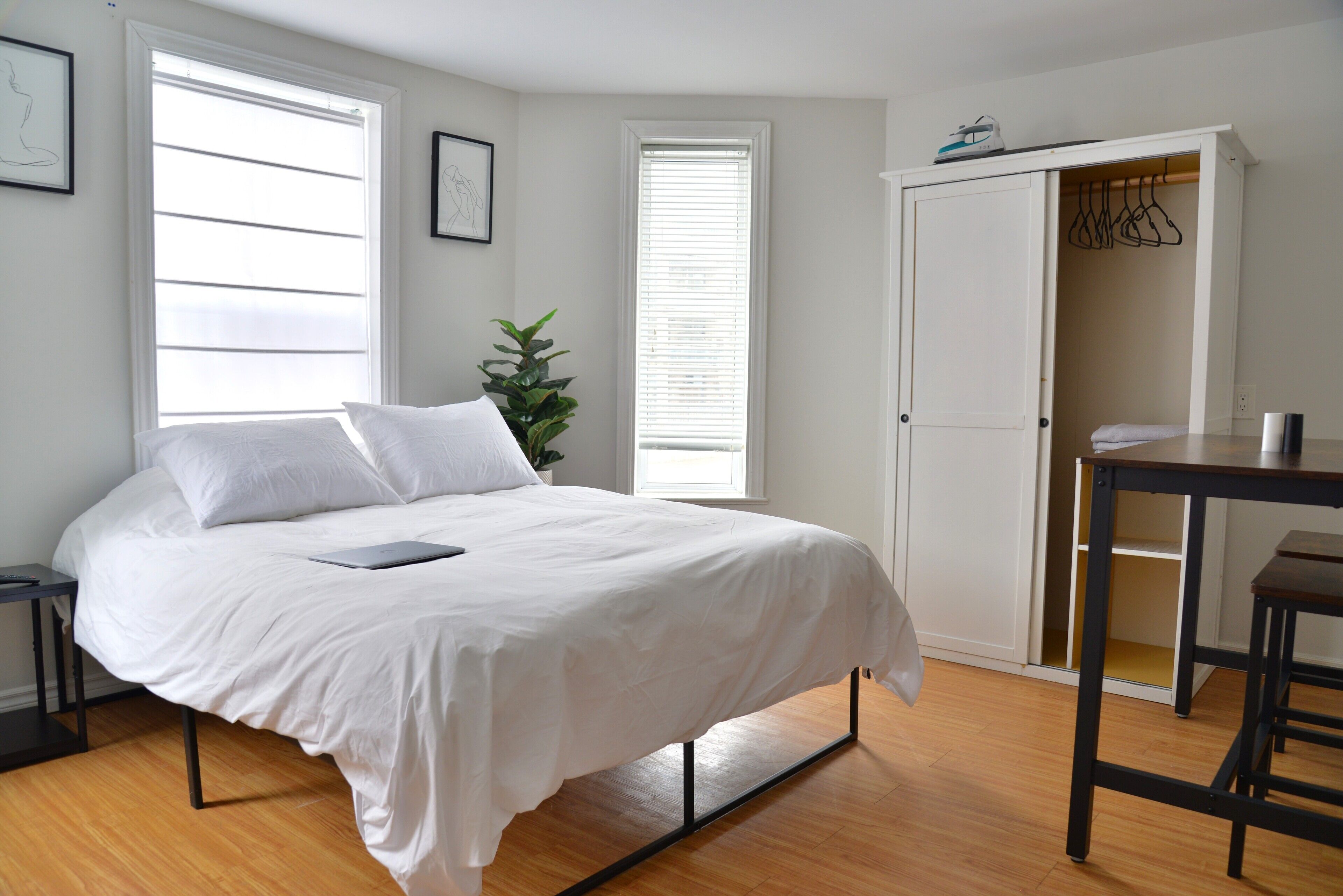 Centrally located modern studio suite, designed with your comfort in mind. This peaceful space is a convenient 10 minute walk from parks, waterfront, a vibrant downtown, restaurants, the local university and local shops. It features a fully equipped kitchen with a full-sized fridge and oven so you can prepare your own meals. When you're ready to sleep, you’ll be sure to sink into our cozy queen sized bed. Our modern bathroom has a walk-in shower and has complimentary toiletries. Book today!