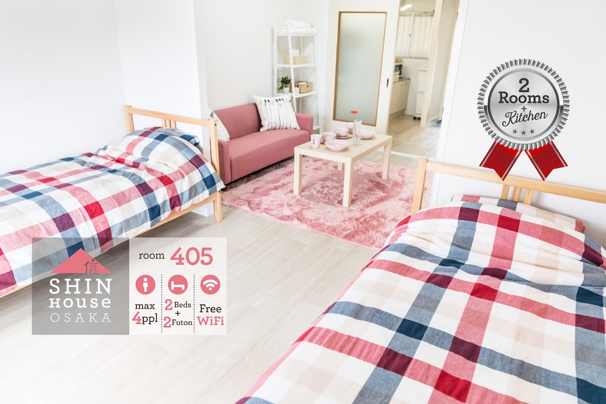 - "Easy check-in. Great instructions for all appliances etc. " - "convenient place, large kitchen" - "It has a perfect location. We loved our stay and it is spacious. Close to everything. Highly recommended." - "This spacious, 1400 square foot two-bedroom apartment with kitchen, w/d, and very large bathroom was perfect for our party of five for three nights in Osaka. The hotel is very centrally located just 3 min walk from the Nippombashi subway station where we got a direct train our next destination, Nara, via the Kintetsu line. We probably could have taken the train from Kyoto to Osaka straight to that station but didn’t research it in time. The hotel is also 5 min from the dynamic and vibrant Dotonbori district, as well as the KUROMON food market. Shinsaibashi street shops are a few minutes walk. The train to Osaka castle and to Expo 2025 were very easily accessible from Nippombashi station. Our three teens absolutely loved the space and having their own full-sized beds in the large dormitory-style second bedroom, while my husband and I shared a cozy full bed in the connecting room next door. Check in and check out was easy if following instructions. The cleaning staff showed up promptly at 10am (Japanese efficiency) and we were able to stow our bags at rhe conveniently located luggage store next door for a nominal ¥500 fee per bag for the whole day. The 7-11 another 2 doors down was a huge plus. The location was perfect, space was great and value for money teriffic. The only complaints we had were getting the ac to work to combat inferno-like temperatures on arrival, and when we had trouble opening the keypad apartment door lock. But we still highly recommend it."