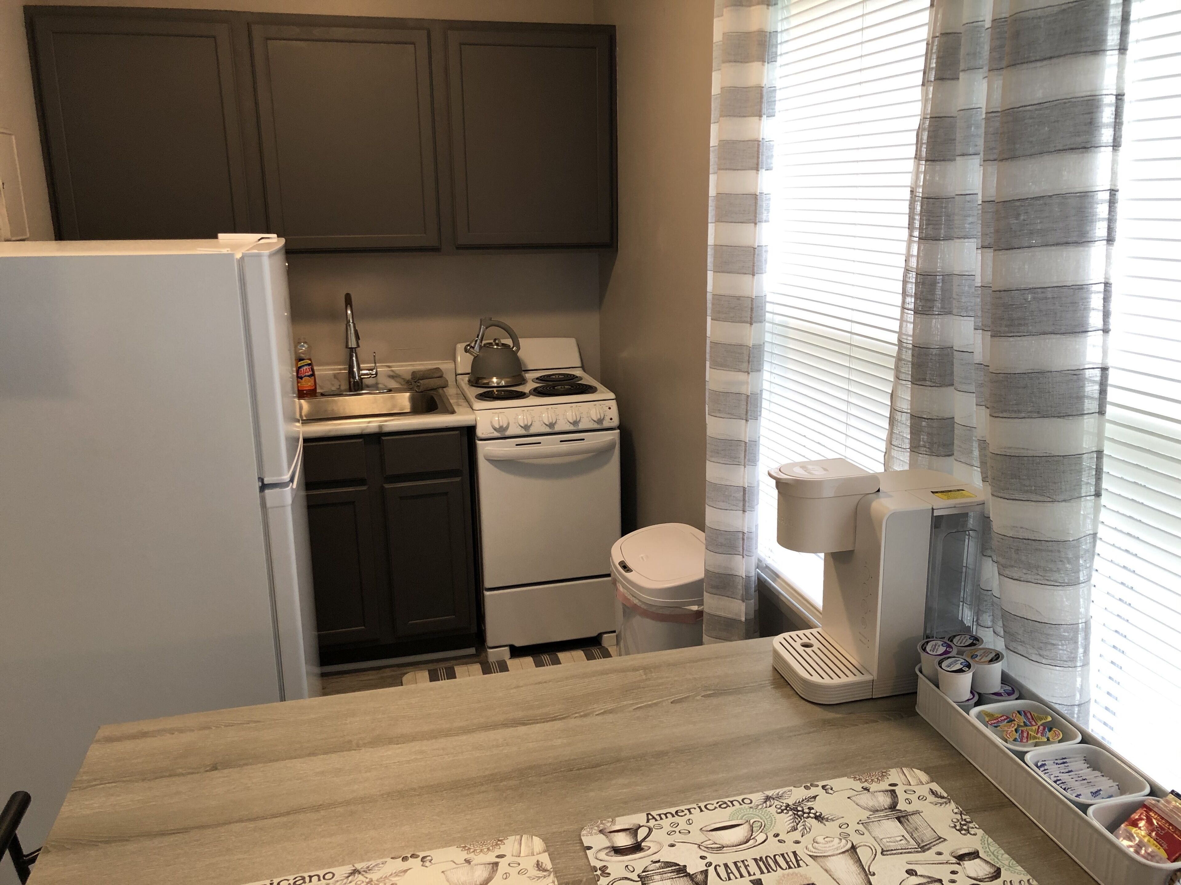 Start your day off right with a cup of coffee or tea from the provided Keurig, and make use of the fully equipped kitchen for any meals or snacks during your stay. Don't worry about bringing your own toiletries - we've got you covered with basic necessities.