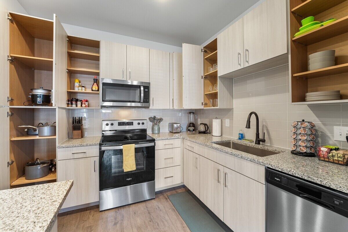 The kitchen is fully stocked with anything you may need to prepare a meal.