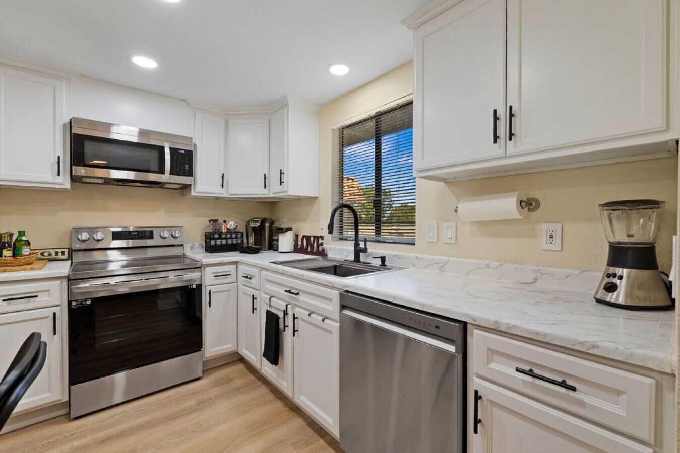 Our Ground Level South-facing Condo Was Recently Renovated. It has Beautiful Granite Counter Tops Throughout The Kitchen, and Natural Stone Tile in both Bathrooms. It is Furnished like a Model Home, and Equipped with Everything You Might Need.
