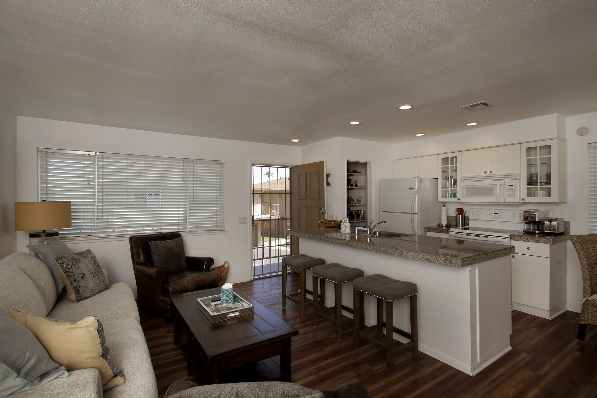 Resort Atmosphere, Space, Amenities, Centrally Located, just 20 minutes from Palm Springs International Airport, and over an hour from Ontario Airport. Free Parking Right By the Unit for your Convenience.
