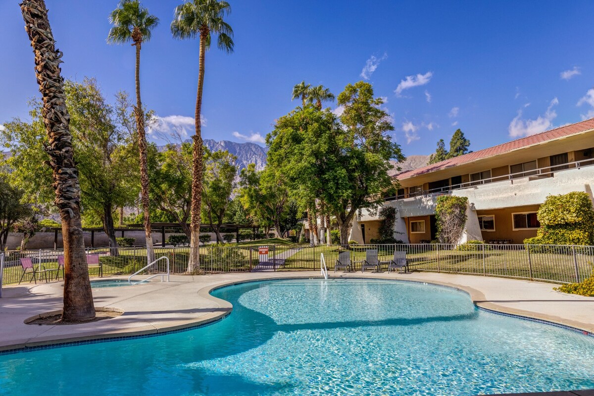 Look forward to palm tree-framed views of the San Jacinto Mountains, walks to coffee at Cartel, or dinner at Sandfish. Access to double pools is the best in the compound and extremely private.