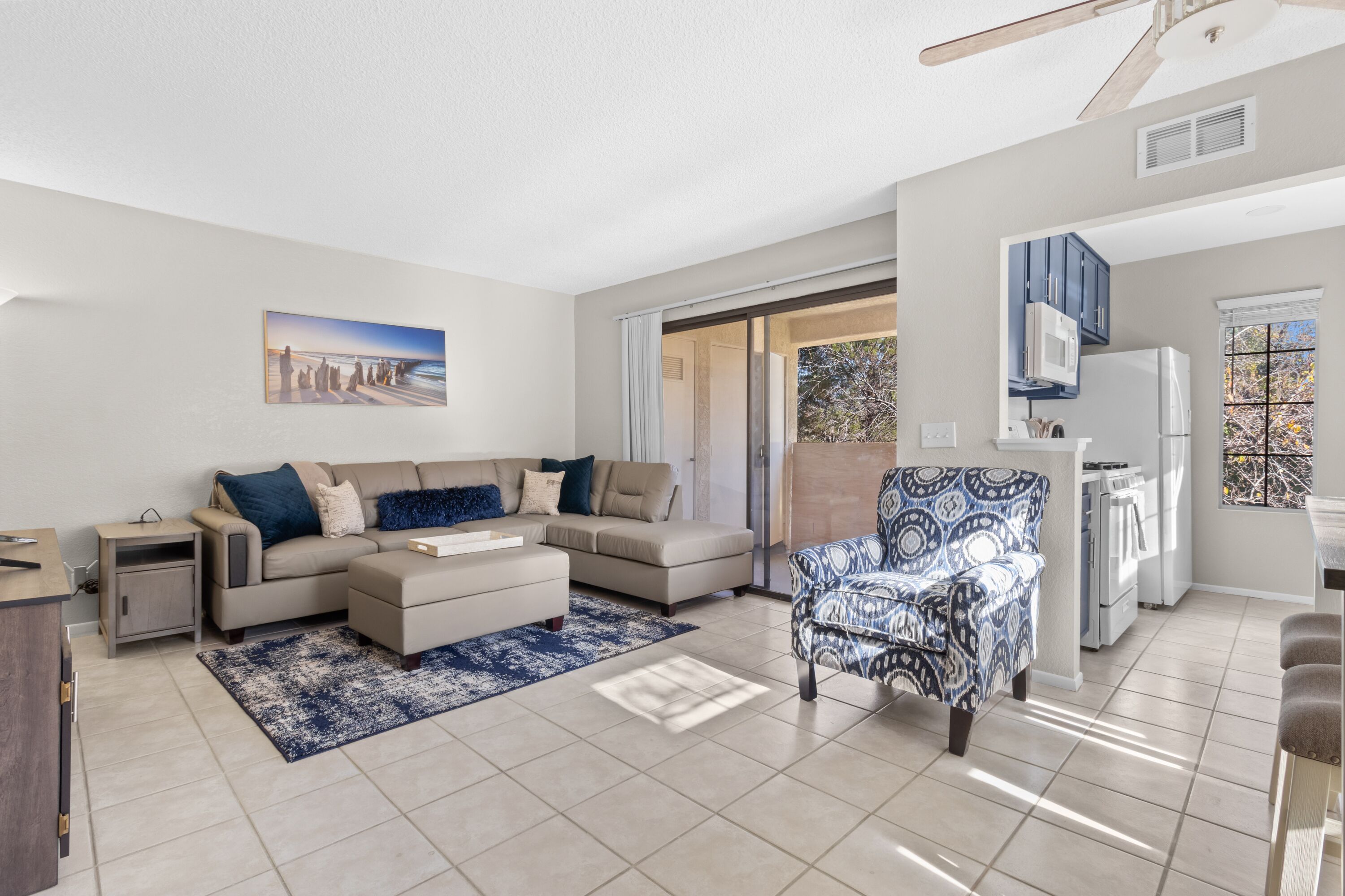 Step into relaxation in this stylishly upgraded living space. Featuring plush seating, contemporary decor, and soothing tones, this room invites you to unwind or entertain with ease. Large sliding doors flood the room with natural light, leading you out to a cozy balcony where you can enjoy fresh air and serene views. Thoughtfully decorated, the room blends modern luxury with the comfort of home perfect for a peaceful retreat or vibrant gatherings.