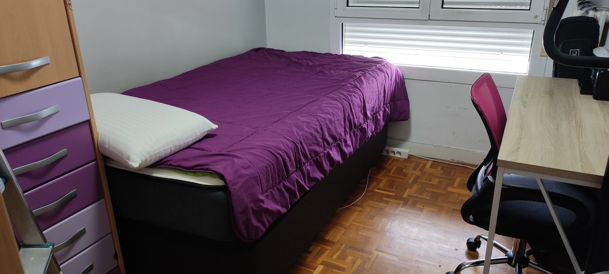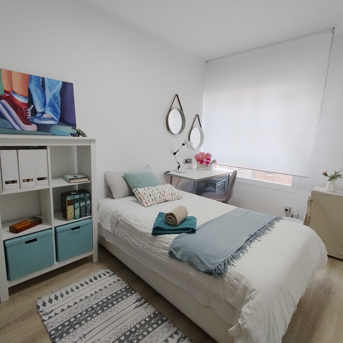 It is a comfortable apartment, in a good area and you can choose from 3 fully equipped rooms. Comfortable beds, large closet with breakfast included ( milk+coffee+juice+cake or tortilla).