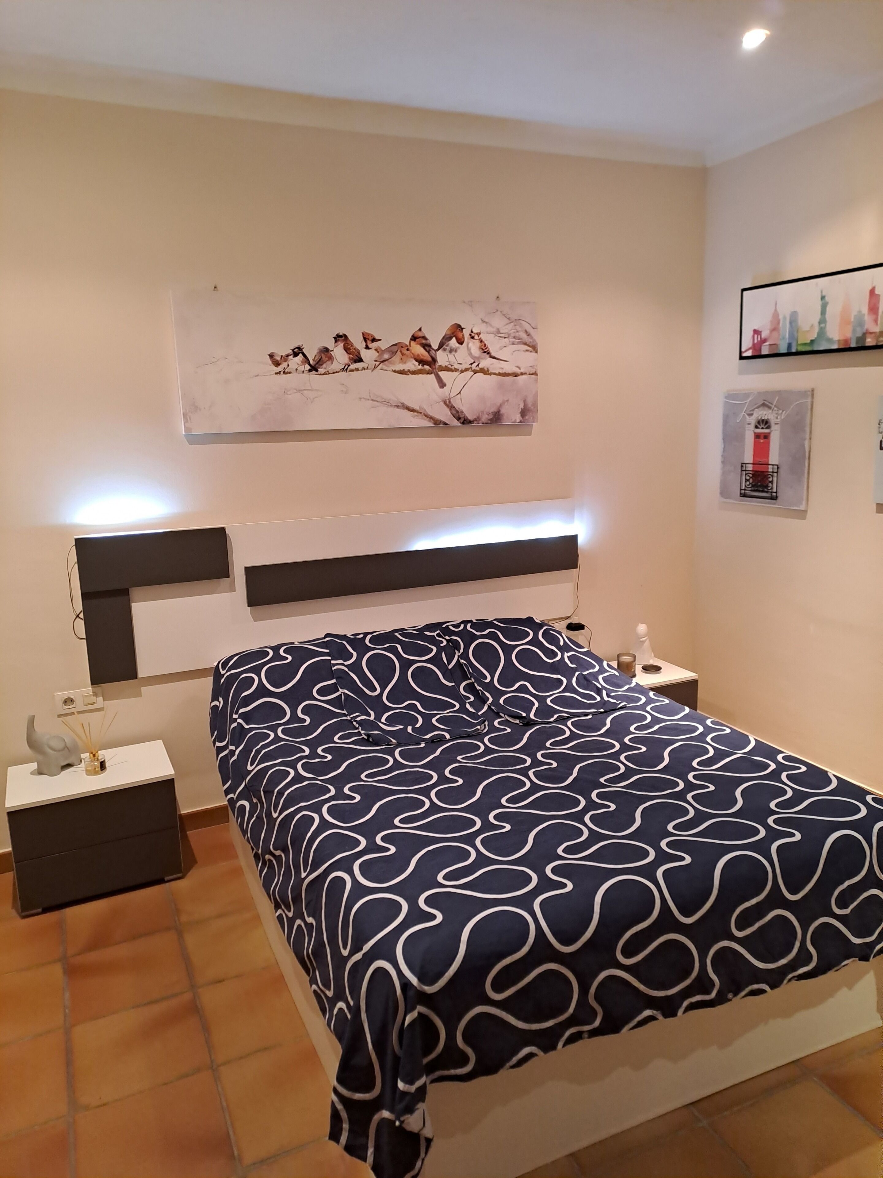 The apartment has one large bedroom with a queen bed for 2 people and a triple bunk bed for 3 people. We can accomodate 5 people in the 2 bedrooms and 2 people in the sofa bed. Every bed and the sofa bed are brand new. Indeed the whole apartment has been fully renovated in 2024. Flat TV, free wifi, large bathroom with walk-in shower, second small bathroom, fully equipped kitchen, fridge/freezer, electric oven, washing/drying machine, dishwasher, microwave, iron board, etc. You can control your AC/heating even though you will rarely need the AC -We are at 360 m. high-.