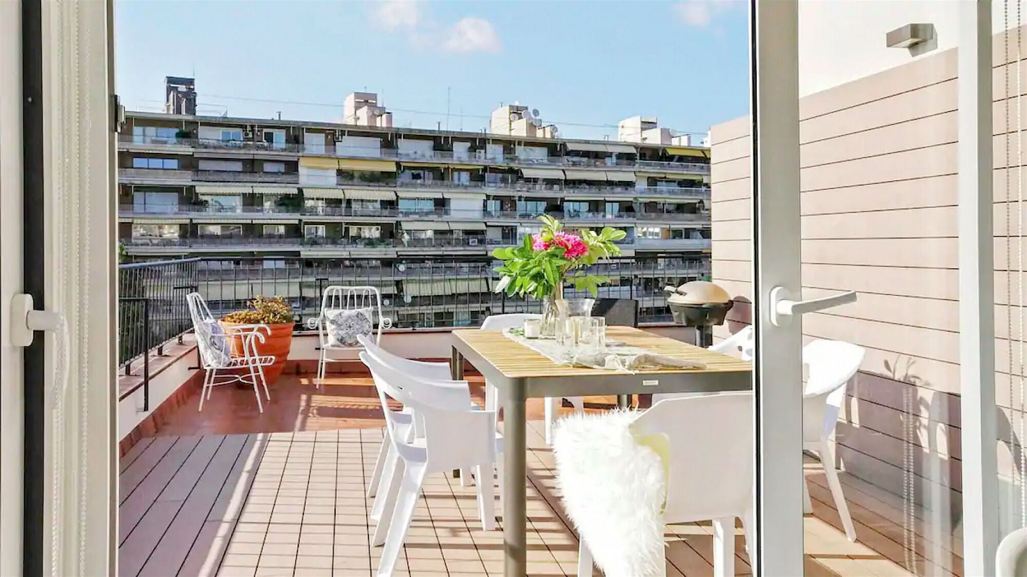 Guest can access to private terrace by building stairs. Terrace is not accessible directly from the apartment. Guest can use between 8h(8am) - 20h(8pm).