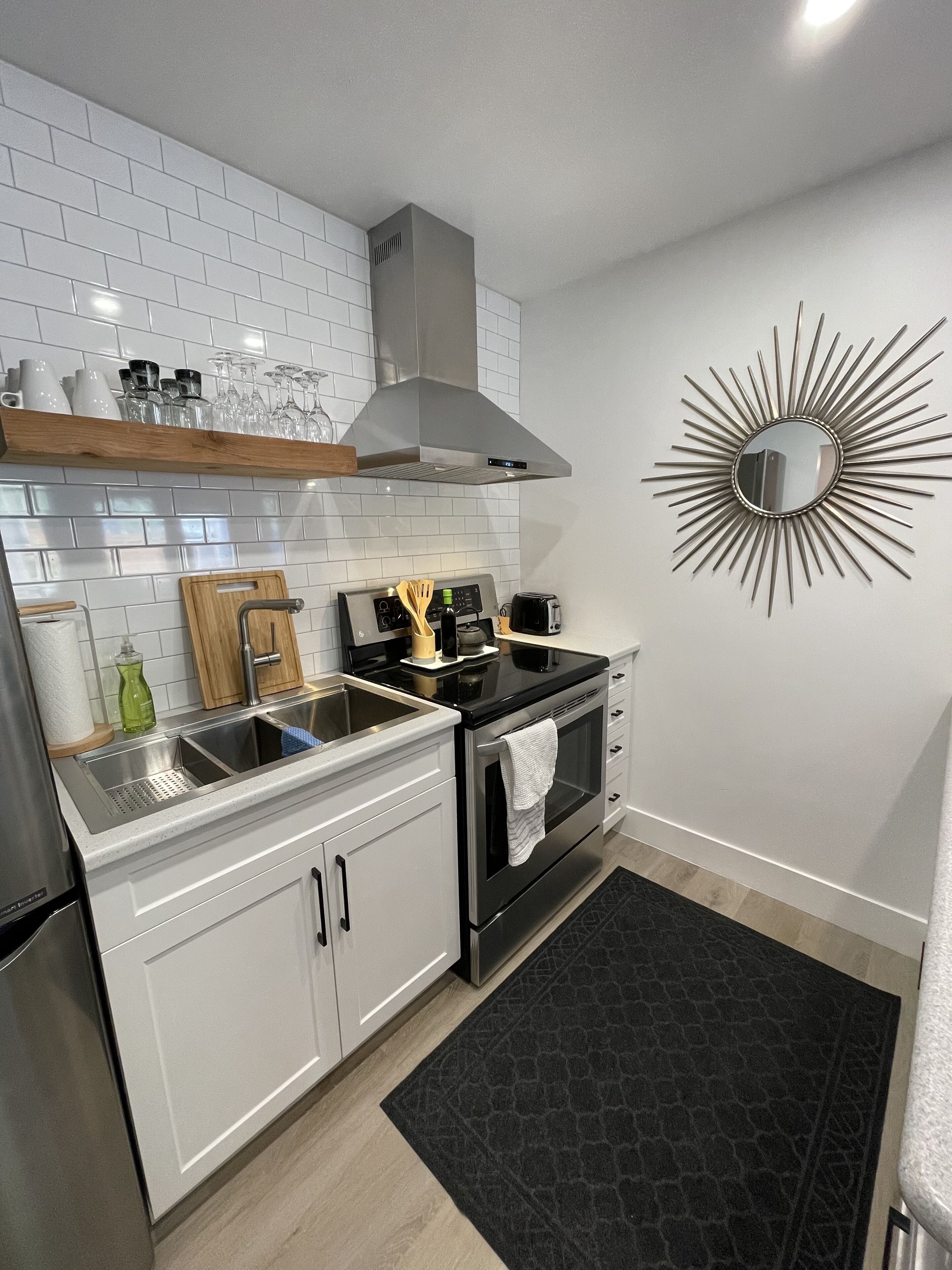 This space is perfect for couples, small families, a weekend getaway with friends, or those looking to work remotely. Sunshower Suites has two units available to rent separately, Unit A and Unit B, which allows the suite to host up to eight people with four beds. Unit A's listing can be found here airbnb.ca/h/sunshowera to rent together with Unit B
