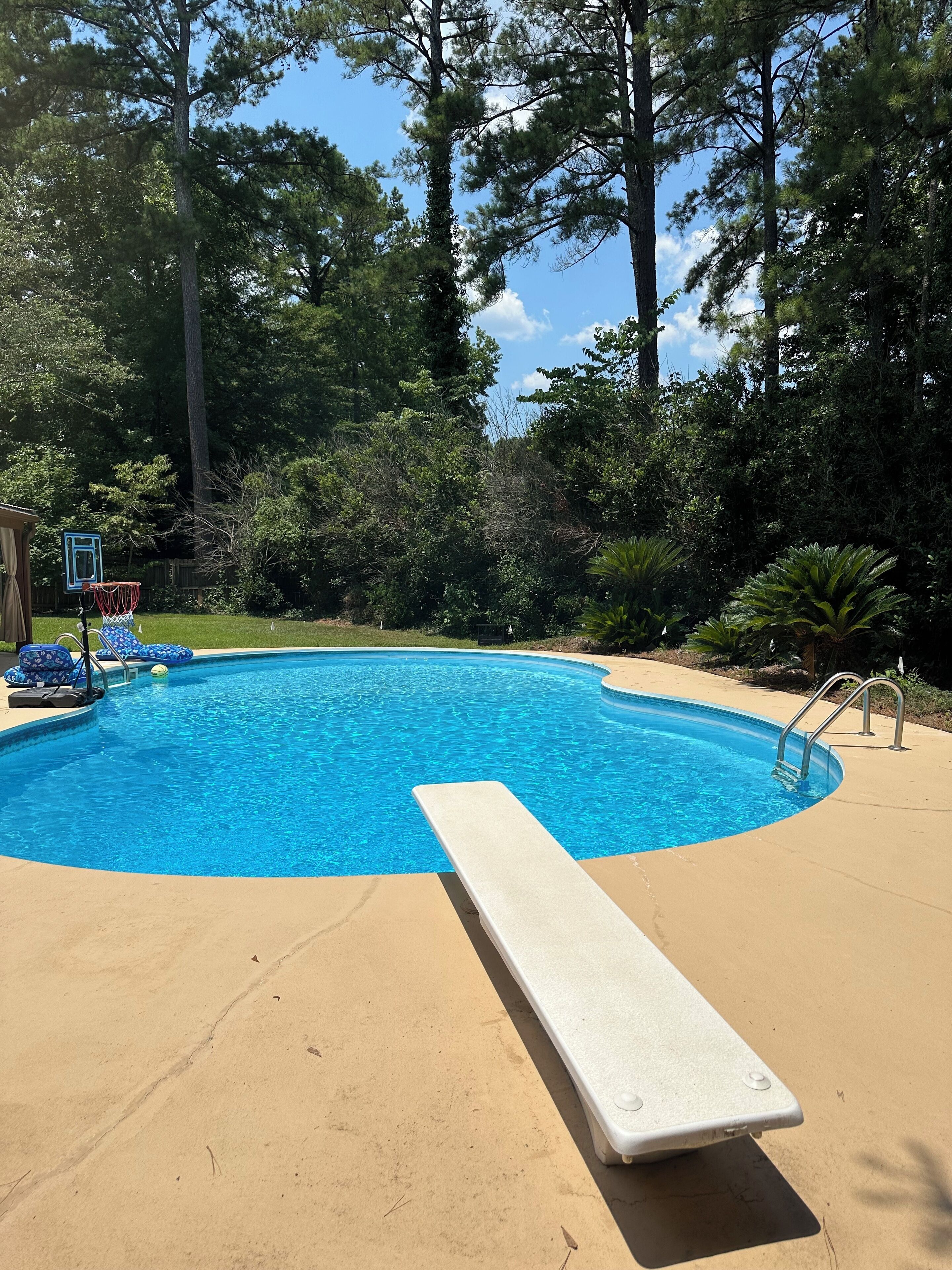 Beautiful bachelor Suite in Central Peachtree City. It has laundry, full kitchen with dishwasher, ice maker in the fridge. Queen Size Murphy bed for sleeping. You have your own outdoor space with tv, fan, seating, dining and BBQ. There is also a beautiful pool. We are close to all the shopping/dining and the 100 miles of golf cart paths. Daily/Weekly rental of our Golf cart is also available