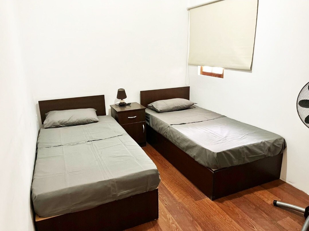 Twin beds in a private room in a spacious four bedrooms flat available in the heart of Swieqi. Centrally located, very modern, close to all amenities, English schools, Paceville, St Julians and Pembroke, Banks... two-minutes walk to the bus station which goes in all directions, close to the supermarket. Equipped with: - Washing machine, - Dry machine, - Dishwasher - LCD TV, Bills and Internet included.