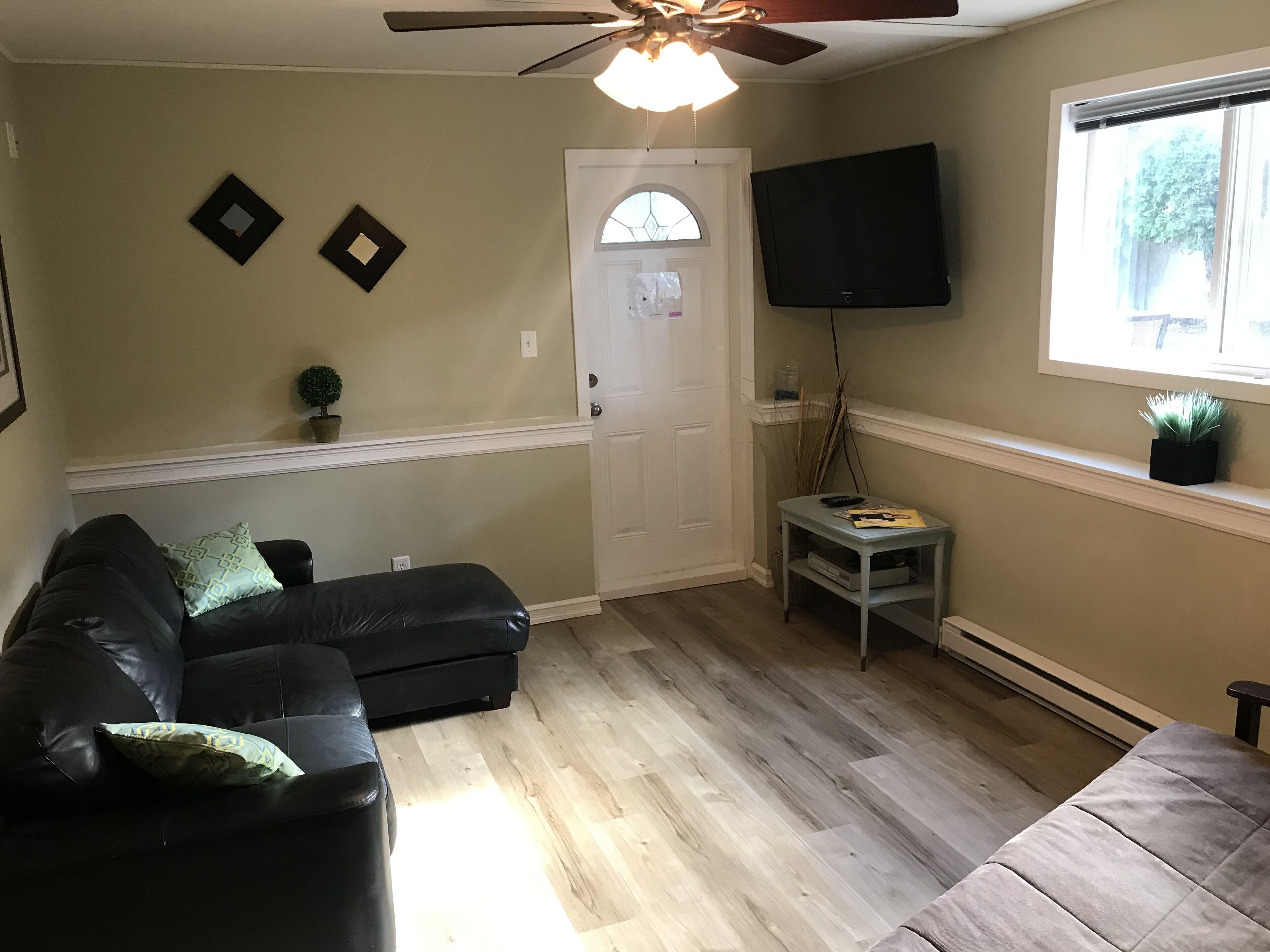 This bright basement suite was newly renovated in 2021 with spacious rooms, extra large living room and a fully equipped kitchen. You have your own fenced in yard and we welcome up to 2 dogs. You may see us and our dog in the other yard so don’t be shy and say hi!