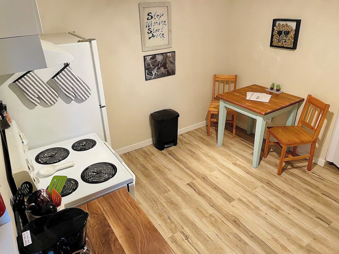 Fall into relaxation mode in our pet friendly guest suite with your own fenced yard. The kitchen has all the amenities you’ll need to make yourself at home like a coffee maker, air fryer & in-suite laundry. You’ll find yourself in a great part of town that is close to a mall, regional hospital, the largest grocery store in town, 2 lakes and of course, wine country!
