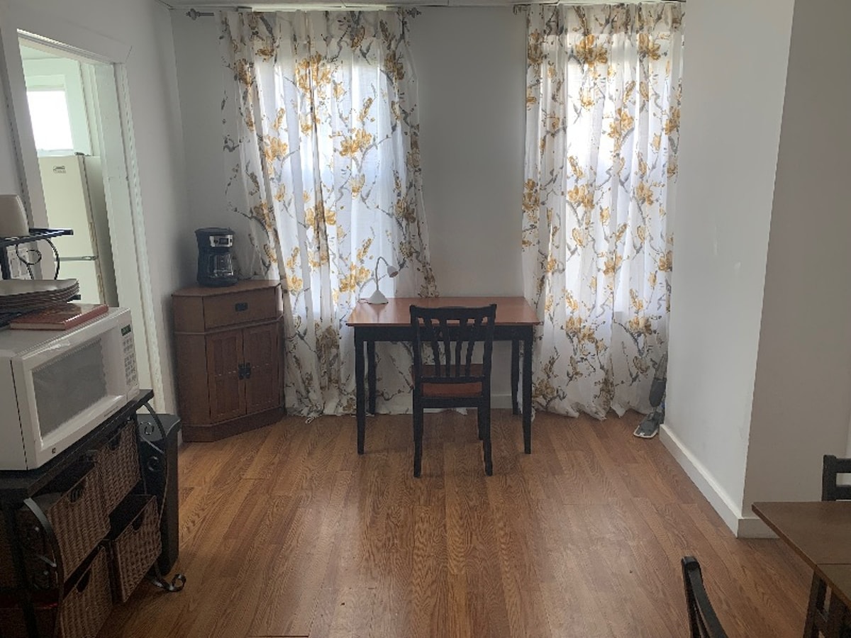 Super clean,1 bed studio apartment in a 5 unit historical building. Space includes a full bathroom and kitchenette with mini-fridge, microwave, toaster, and coffee maker. Help yourself to a variety of coffees, juice, water, snacks, breakfast bars and oatmeal. A dresser and closet allow ou to unpack and make yourself at home. Included is a wall mounted table for dining or work purposes. A large smart TV provides entertainment.