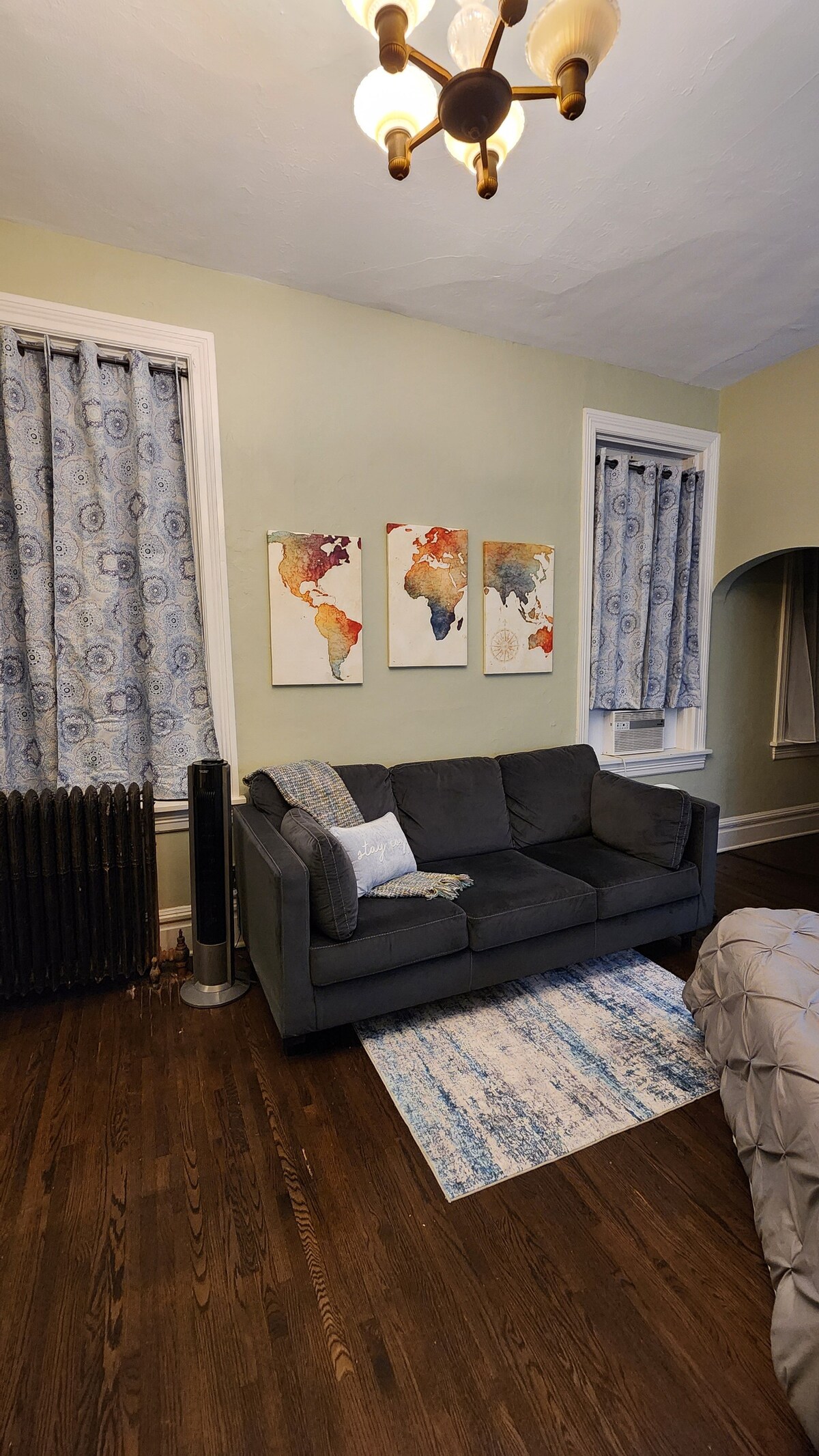 Depending on time of year of guest stays, will depend on building controlled central air/ central heat. The apartment is also equipped with portable cooling/heating as applicable to ensure individual guest comfort. Please Note: When seasonal heating is in use, the heat is provided by a steam boiler. The in apartment radiators will at time self-regulate causing a temporary knocking sound and/or a releasing of air pressure. No manual adjustments are needed, the system is simply adjusting as needed.