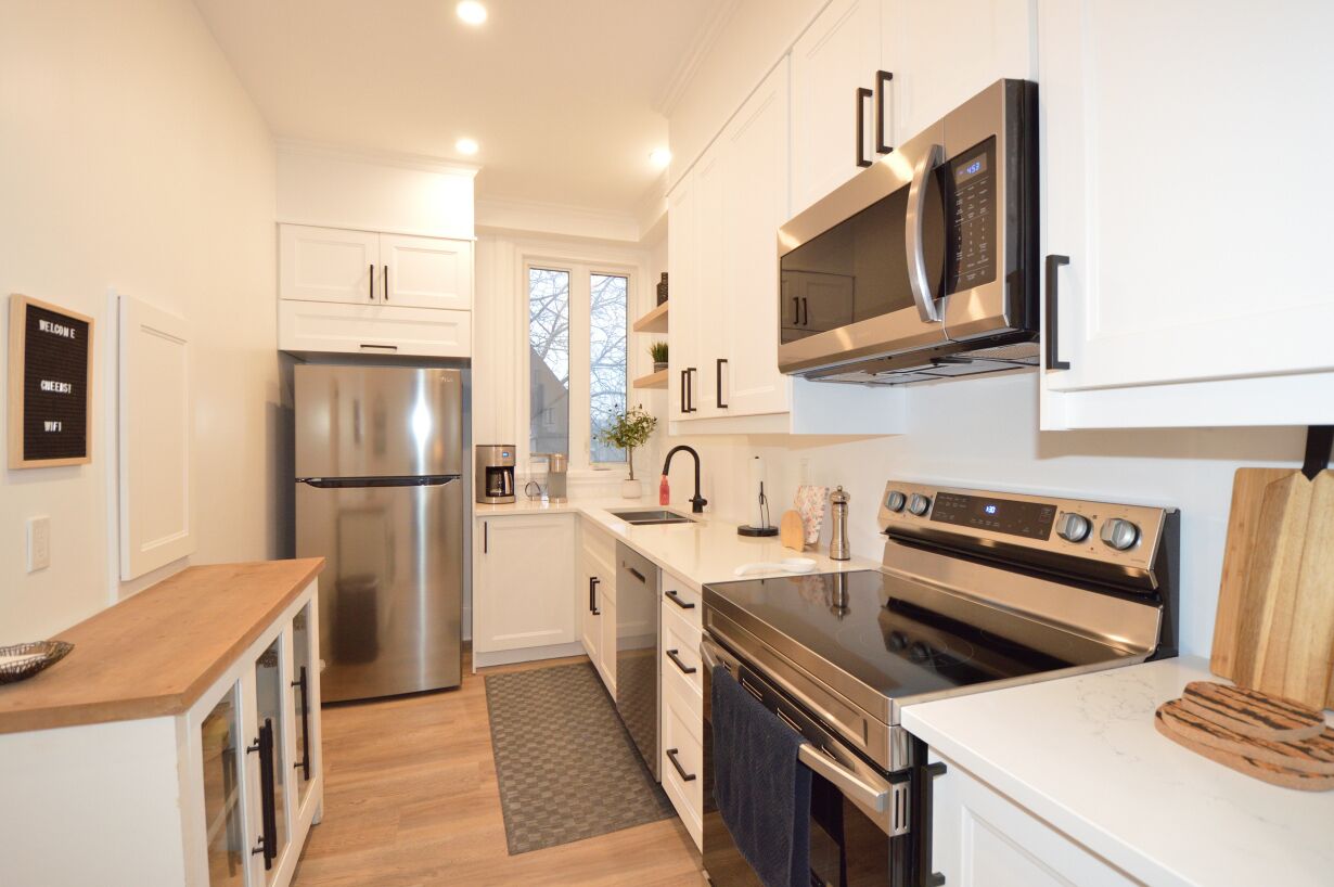Welcome to your cozy open-concept oasis, tucked away in a fully renovated suite within a 165-year-old heritage building. Located in the heart of historic Perth, just steps from Stewart Park, the Town Hall, and the Tay River Basin, this thoughtfully designed space blends European charm with modern comfort — the perfect retreat for couples, solo travellers, or business guests.