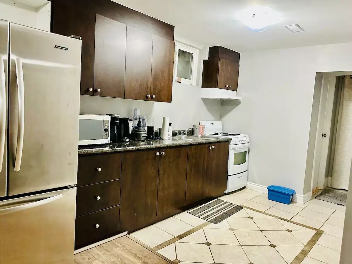 Our beautiful modern basement apartment offers 2 bedrooms with queen beds, 1 full washroom and a spacious kitchen and living space. Our 1000 square foot home is minutes drive to the beach, Highway 401 and Go station. It is also near all major amenities including grocery stores, laundromat, banks and food stores. Experience our grandeur home and fall in love with high ceilings, great views and beautiful interiors.