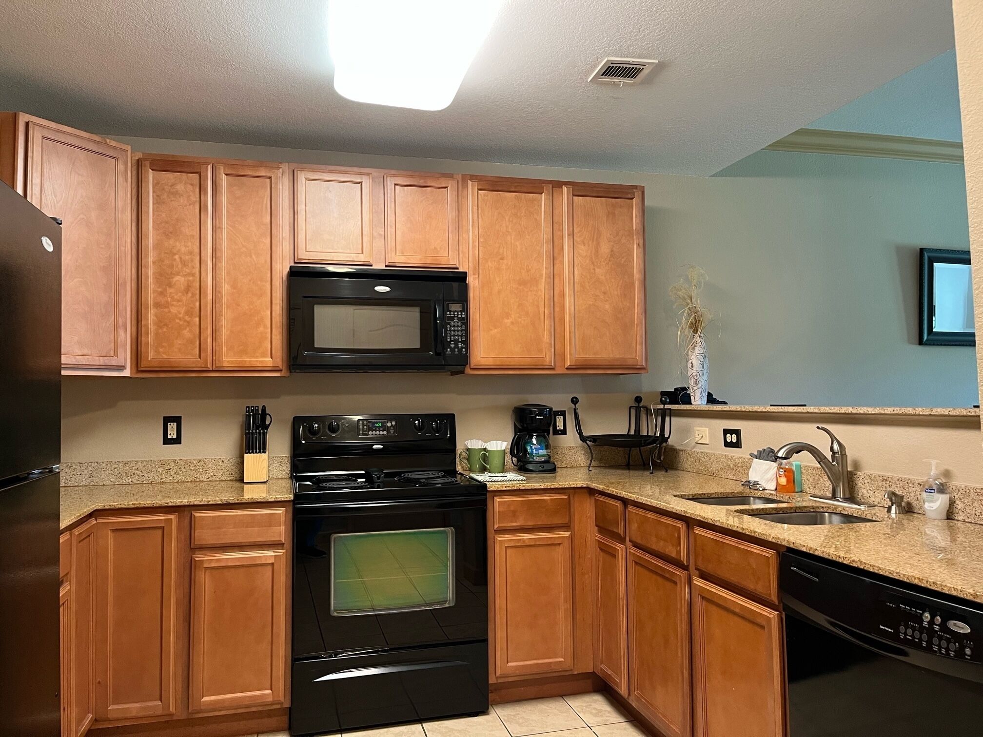 This unit has all new appliances and granite countertops in the kitchen and bathrooms. There is a jetted tub in the master bedroom. LCD flat screen TVs are located in the master bedroom and living room. There is a washer, dryer & blowdryer too.