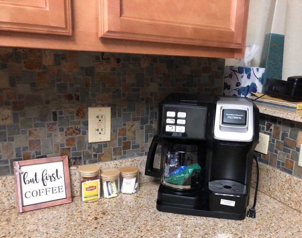 Start your day right with our fully stocked gourmet beverage station. Brew the perfect cup using our Cuisinart Drip Coffee Maker, which features an integrated coffee bean grinder for freshly ground flavor every time. For a more robust experience, our stainless steel French press delivers a rich, full-bodied brew in minutes.