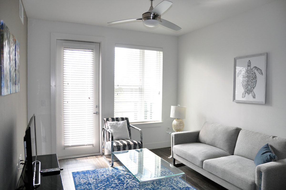 - "Overall, lovely experience except for the cleaning that needs to be improved. " - "Excellent Communication and place was just what I needed. " - "Very nice and clean apartment. Very quiet!! Great gym access and beautiful pool! Communication was amazing! Close to downtown and other venues. " - "Good 1st floor location right by gym, pool table room, and pool." - "We had a great stay at this apartment! The location is fantastic—safe, convenient, and not once did we feel like we were in a horror movie parking lot (which is always a plus). The host was incredibly responsive, which came in handy when we realized our large truck was not making the tight turn into the parking gate. They quickly gave us an alternative, saving us from an embarrassing game of “How many back-and-forths does it take to park?”The apartment was spotless, which we appreciated. The only hiccup was the showers in both bathrooms refusing to drain, as if they were holding onto the water for sentimental reasons. The host responded quickly and worked on fixing it, so no major complaints there. The beds are very firm—I was fine, but my husband felt like he was sleeping on a wooden plank in a pirate movie. Also, the master bedroom has a monitor instead of a TV, so if you were hoping to binge-watch your favorite shows from bed, you might have to improvise.Overall, a great place with a super responsive host! "