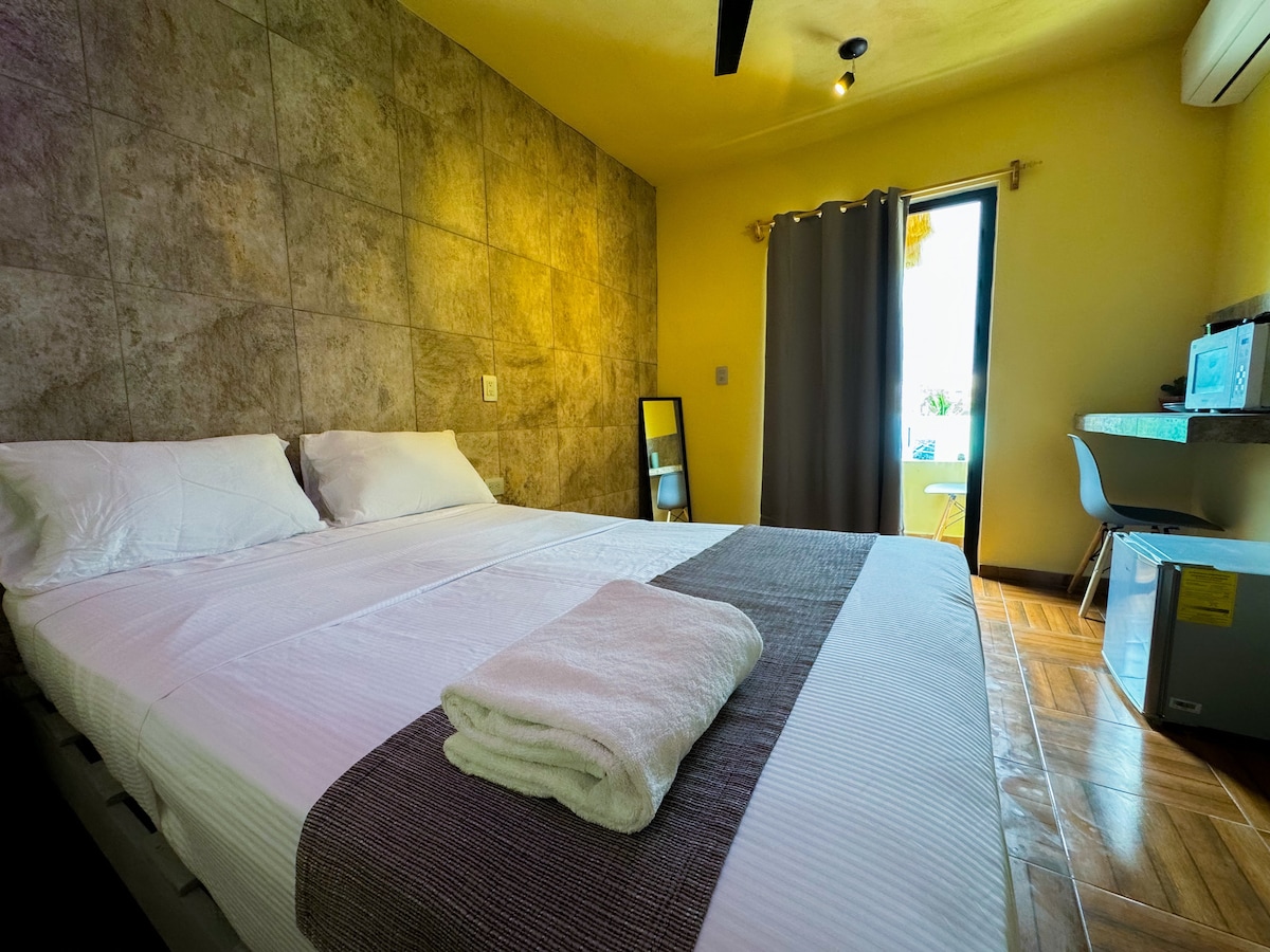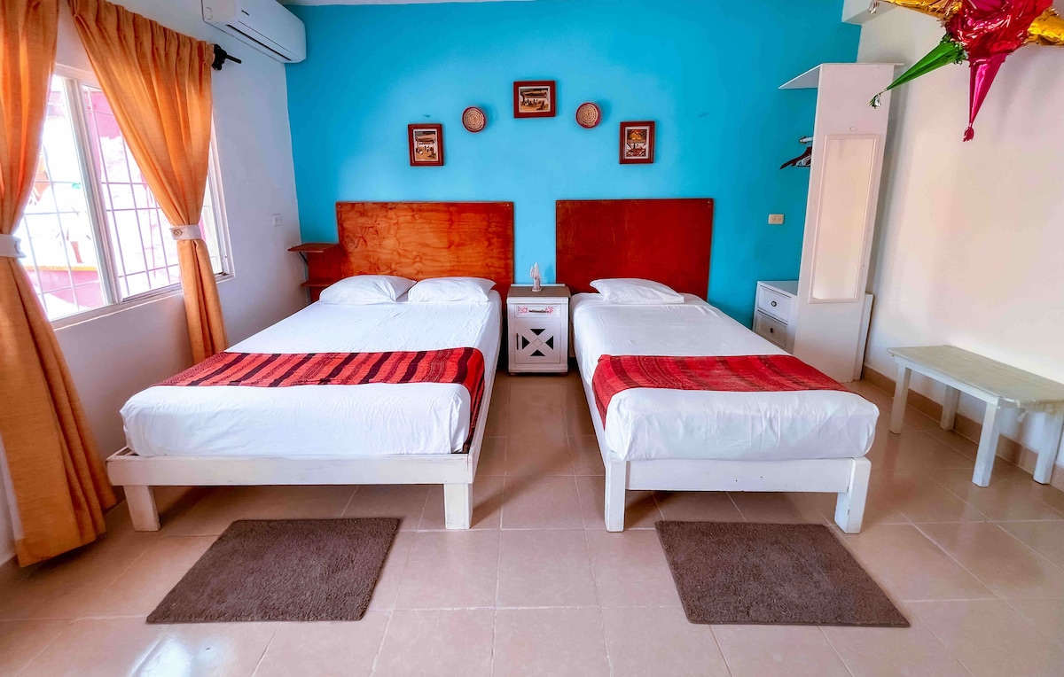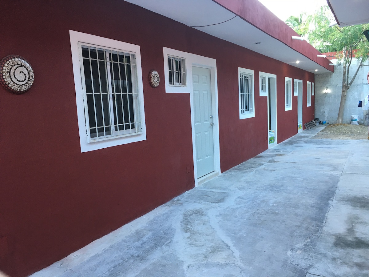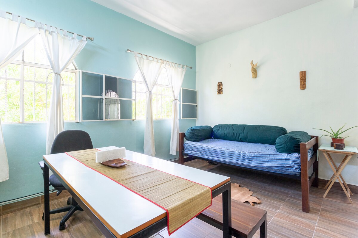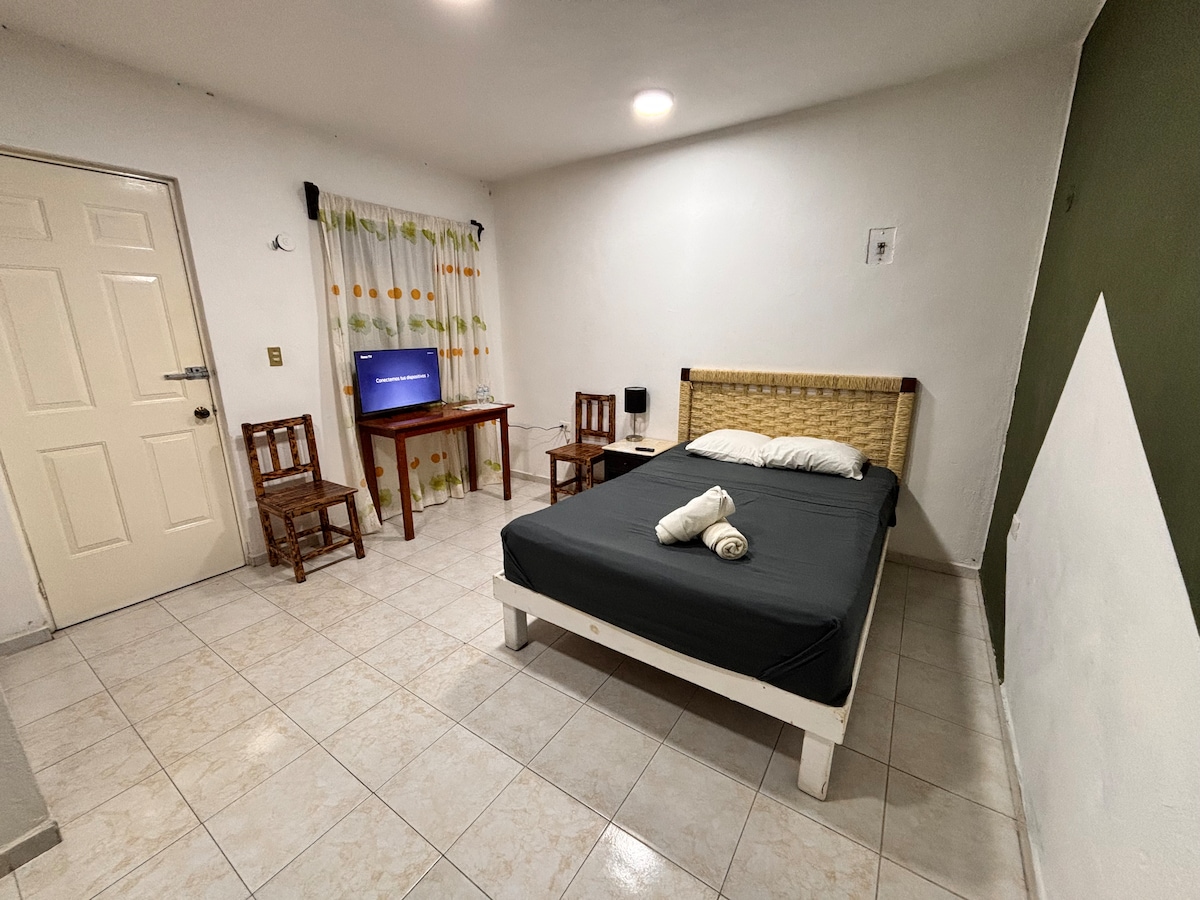 Comfortable Mexican-themed room located just 5 minutes walk to the public beach and 5th Avenue, just 15 minutes from the city center and just 10 minutes from the famous "mamitas" beach club. It has the proximity of laundries, shops, tortilla shops, fruit shops, public transport and supermarkets.