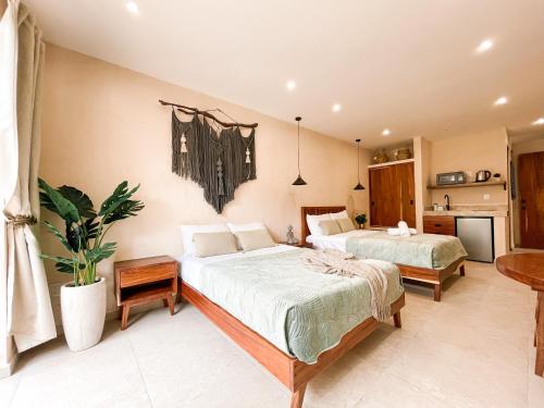 - "great affordable spot right in the heart of downtown playa at a great price. basically, like apartments with kitchen and very spacious bedrooms. If you're looking for pools or any of that look elsewhere but if you're looking for a nice spacious place to stay where you can walk outside and be right at 5th avenue downtown this is a great choice. very secure as well and the staff is super friendly. " - "the only think I not like is noise because is situated near to busy 5th Ave street but really love it "