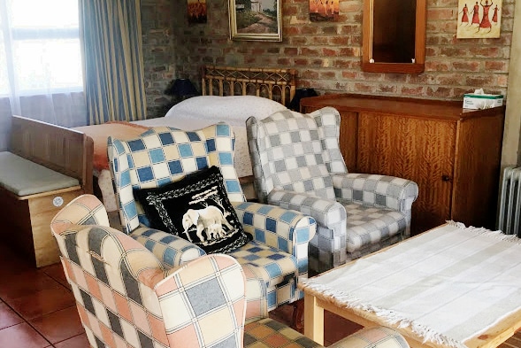 Located in a secure complex on the ground floor, this self-catering room consists of a king size bed, microwave, kettle, induction cooker and crockery. There is outdoor BBQ facilities with a table and chairs. It includes a large flat-screen TV with DSTV
