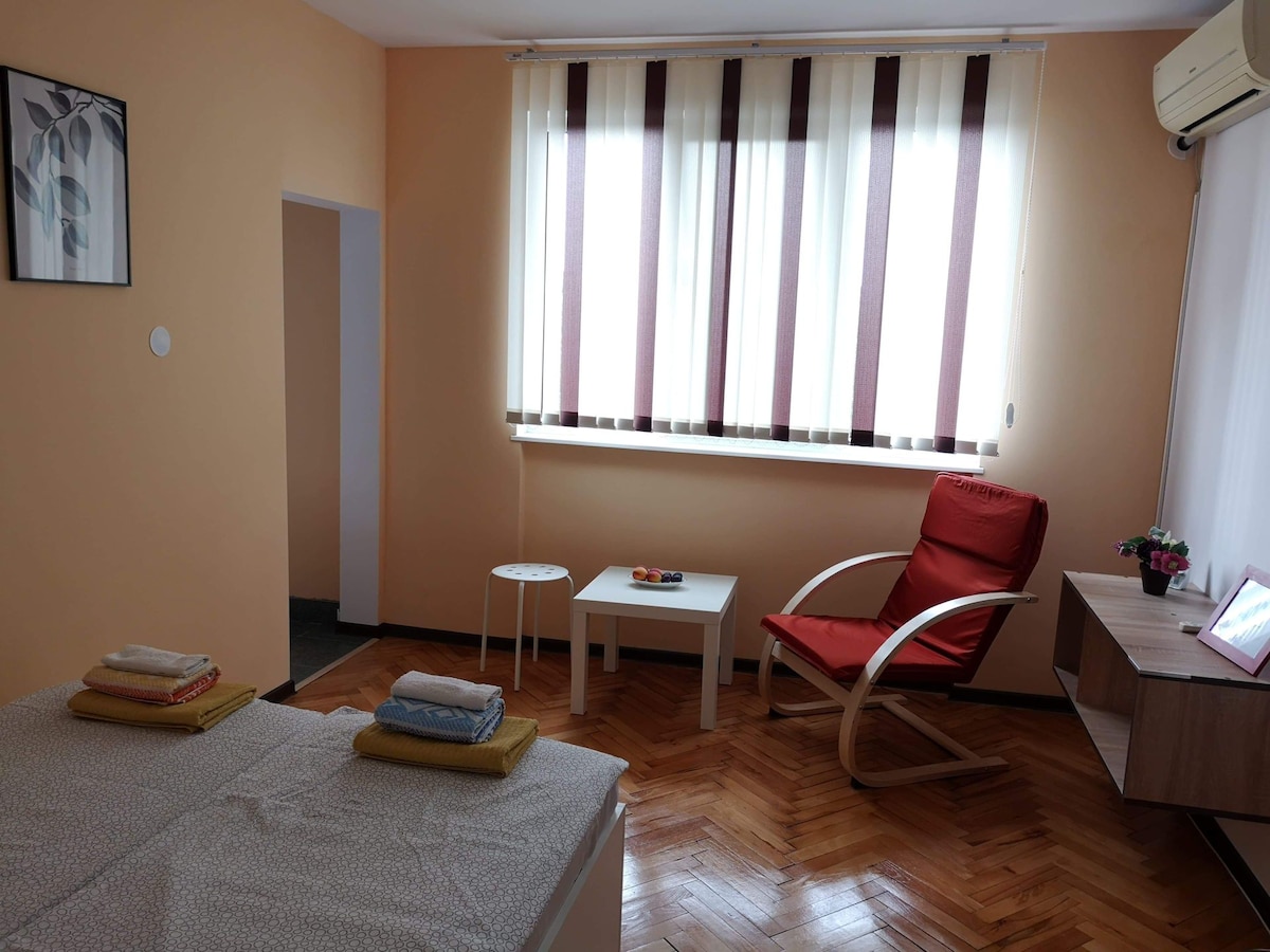 Small and cosy accommodation. Place is 500m away from Internatiinal Fair Plovdiv and about a mile away from Roman Theatre Plovdiv. Only 15mins walking distance from downtown.
