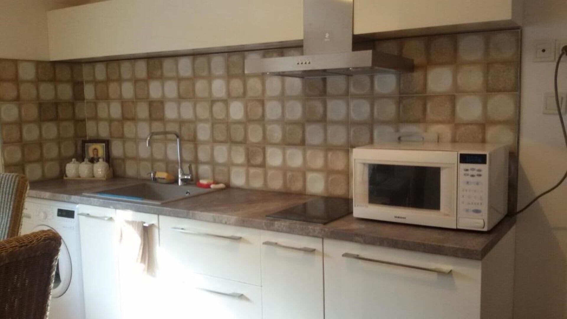 The apartment has a fitted kitchen - microwave, electric kettle, plates, glasses and cutlery. Please feel free to use coffee and tea. Amenities also include a hair dryer, iron for clothing, an umbrella for some cloudy days. It also has a comfortable bedroom and a living room with a large TV. High speed internet connection / Wi-Fi.
