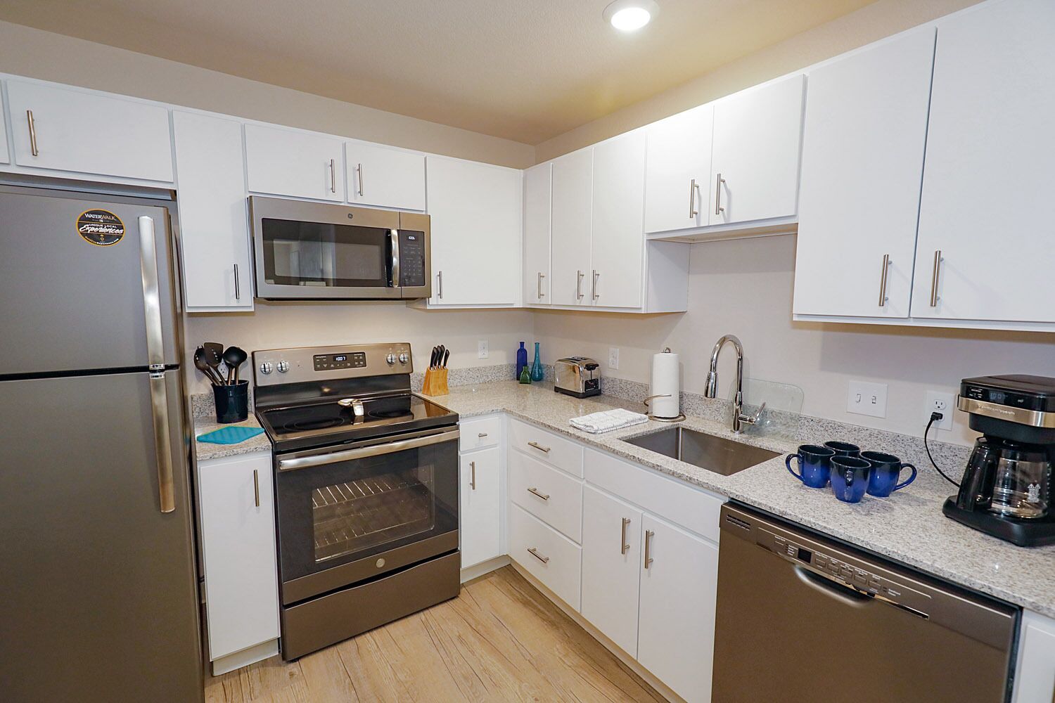 Experience the ultimate in hospitality. WaterWalk is conveniently located in Plymouth, MN, 15 miles West of downtown Minneapolis. We are tucked in a quiet business park setting at Bass Lake Road and MN-169. We are located a few minutes away from Eagle Lake Regional Park & Golf, Clifton E French Regional Park and Medicine Lake, Maple Grove Ice Arena and Community Center and close to breathtaking scenery Minnesota is known for. Our all-inclusive 2-Bedroom 2-Bath apartment style suite will make you feel at home – complete with expansive living spaces, private bedrooms, chef’s kitchen with full-sized appliances and in-unit washer and dryer. All you need to do is unpack your suitcase, kick back and enjoy yourself with a cup of java in our spacious lobby or get cozy at our Community Courtyard fire-pit and outdoor grills or get in a workout in our fitness center.