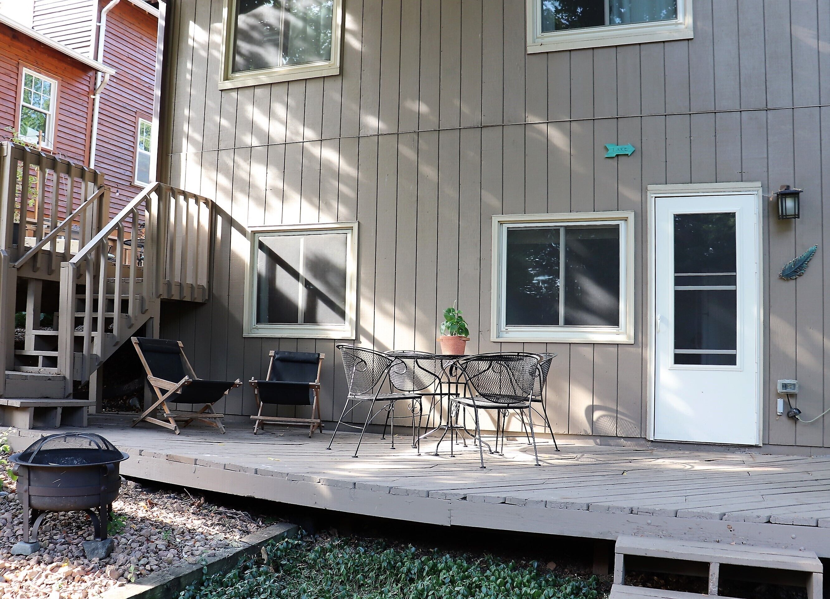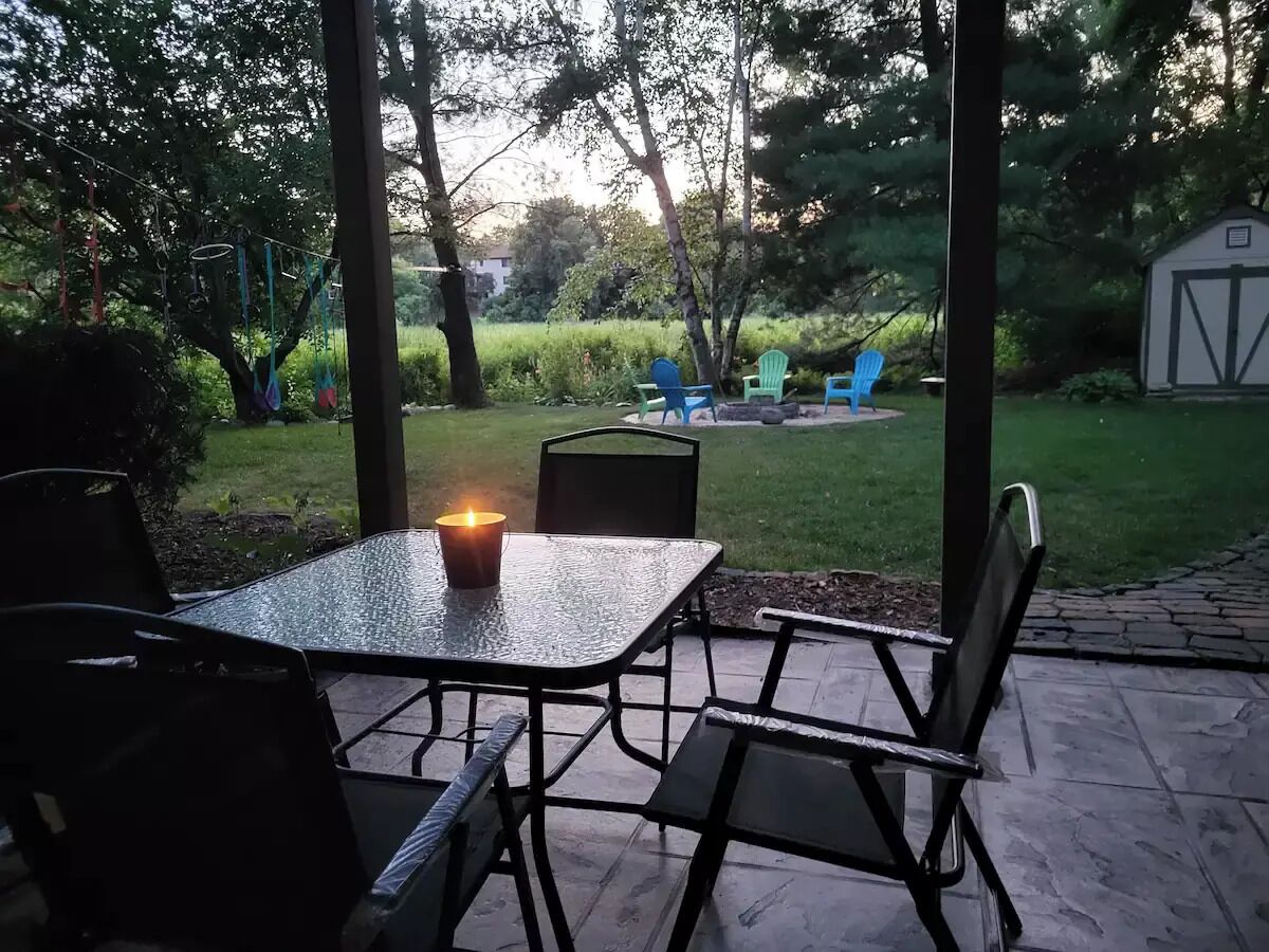 2-bedroom lakeside apartment with a sprawling backyard, featuring a pampering hot tub and fire pit in a verdant suburb of Minneapolis.