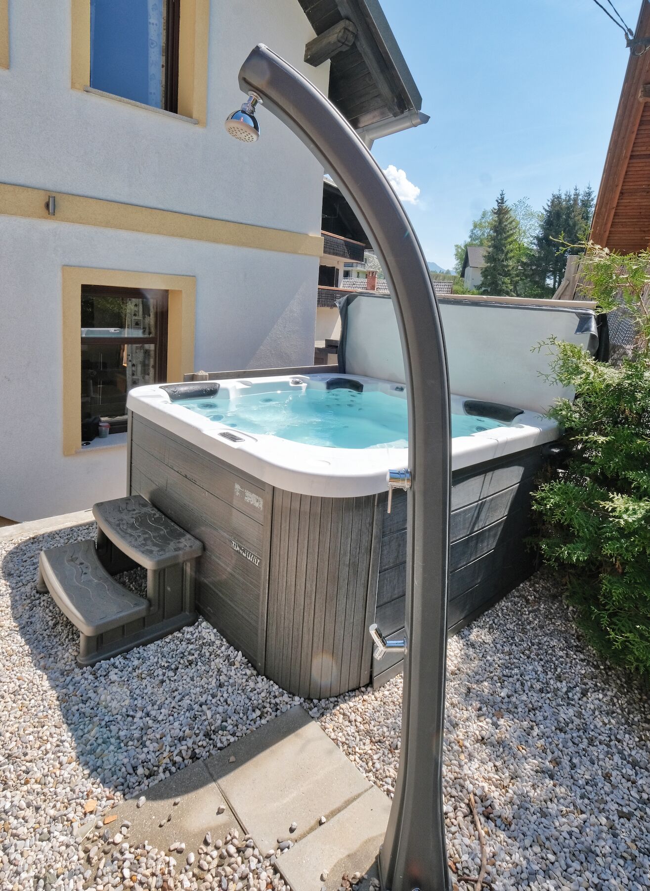 In the shared garden, you can enjoy a good glass of wine, make use of the barbecue area, and soak in the jacuzzi in summer.