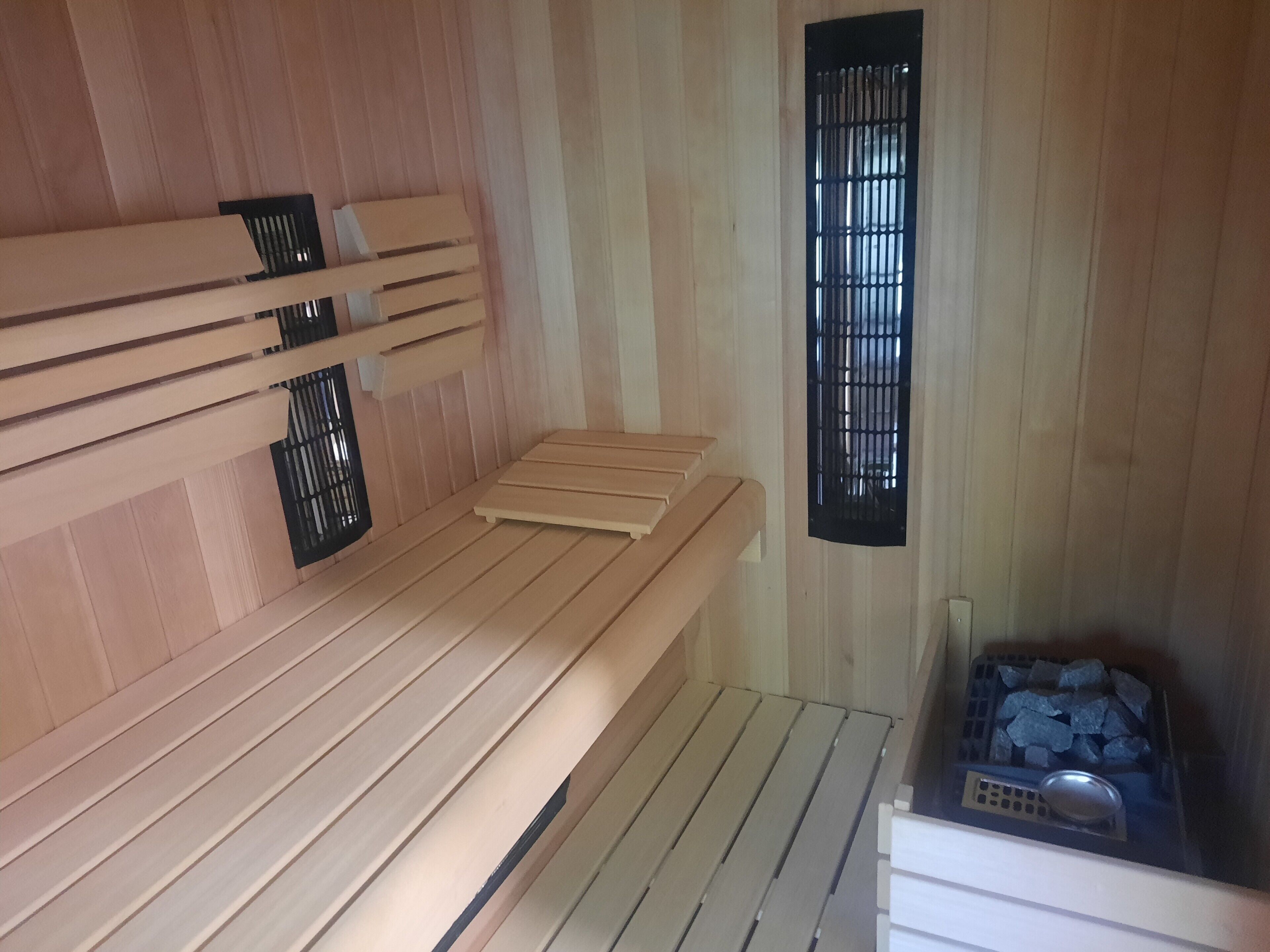 The wooden & unique interior and exterior are traditional and handcrafted. The apartment also has floor heating and access to the shared garden with a BBQ and a hot tub.