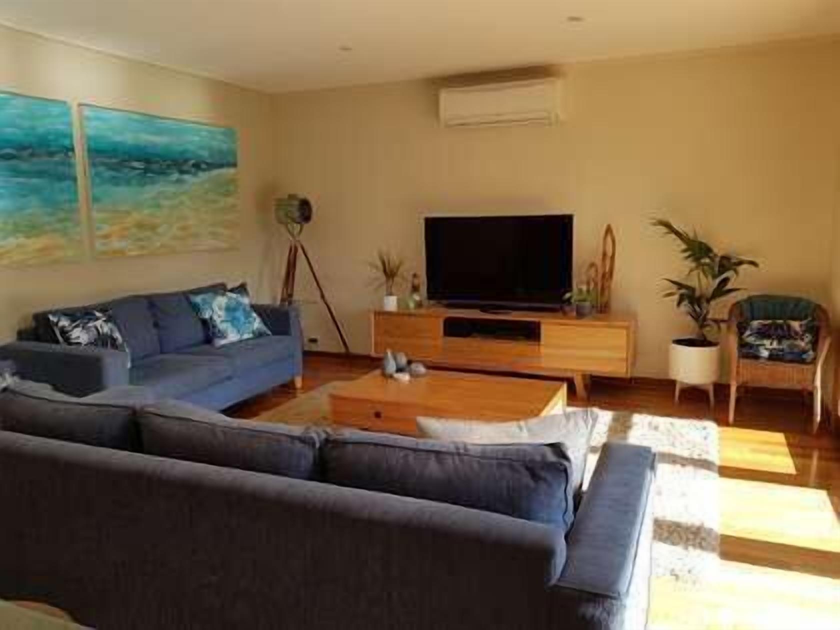 Rip Tide has three bedrooms: two bedrooms with queen beds, and one with 2 x king singles with double doonas. The main bedroom is situated on the ground level with ensuite, and the remaining 2 bedrooms are upstairs with a shared bathroom. Both bathrooms have shower (no bath). Please note the bedrooms are all fitted with air conditioners so guests will be able to stay cool over summer.