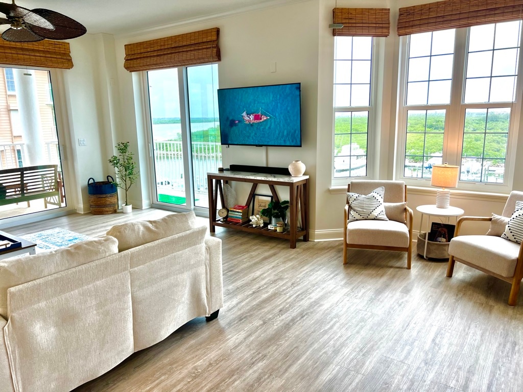 This beautifully appointed condo offers a perfect blend of comfort and sophistication. The spacious living area is bathed in natural light, creating a warm and inviting atmosphere. Relax while taking in the picturesque vistas of the marina and the tranquil river beyond.