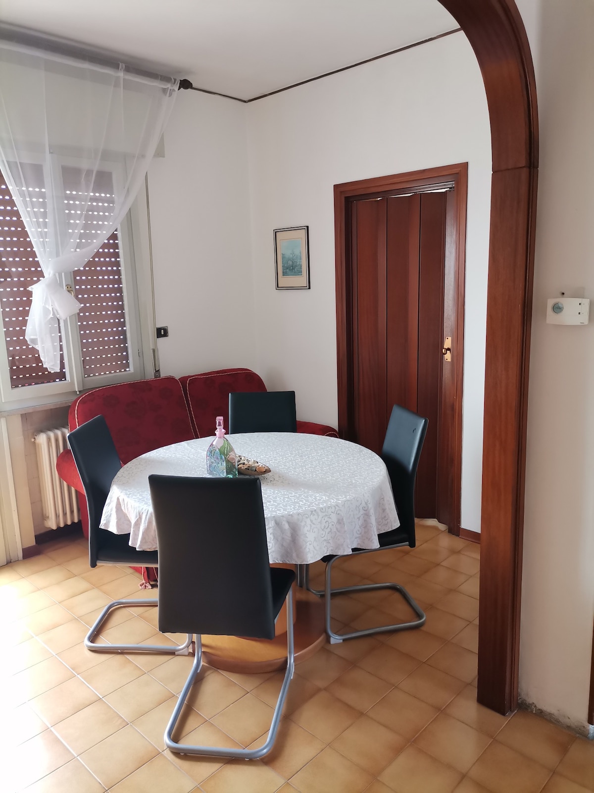 Recently renovated 110 sqm apartment, very bright and quiet, located on the third floor of the building equipped with elevator. Large living/dining room with sofa bed and separate kitchen, 3 bedrooms (1 double bed, 1 single bed and 1 bunk bed), 2 large bathrooms, small terrace. The center can be reached on foot in a few minutes (about 150 meters from the main course), below the house there is a covered public parking, a breakfast bar and a hairdresser, while the cinema, pharmacy and hospital are a few meters away.