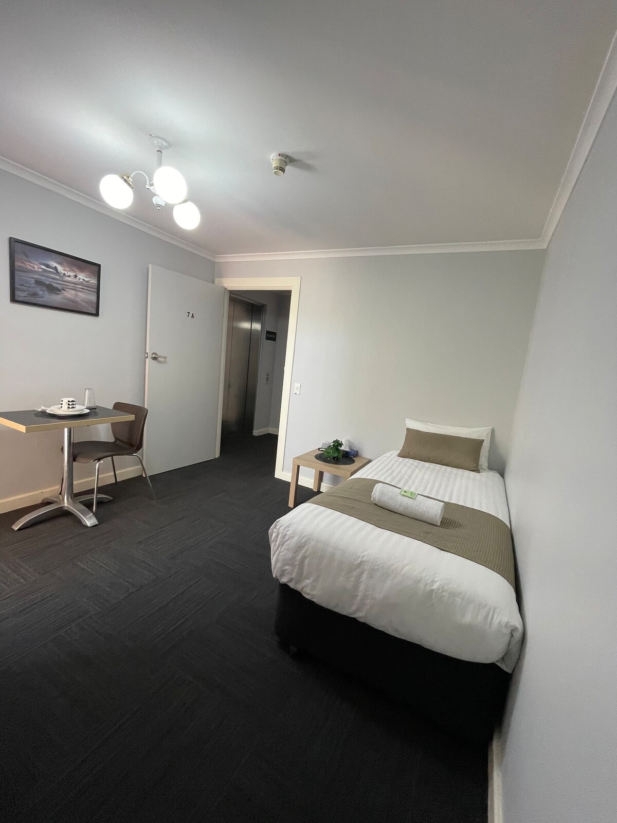 This open plan living offers a large open lay out bedroom with 1 queen and 3 single beds, a seperate dining room/kitchen and a bathroom. Offering a Flatscreen TV, Free Wifi, free on street parking a Fridge, Microwave and kettle. This is located in the Port Pirie city centre.