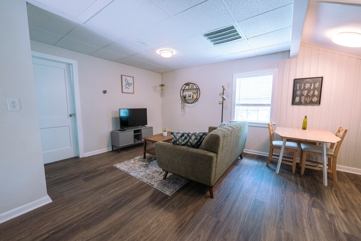 The living room has ample space for relaxation and has a 55" Smart TV with cable and high-speed wifi.