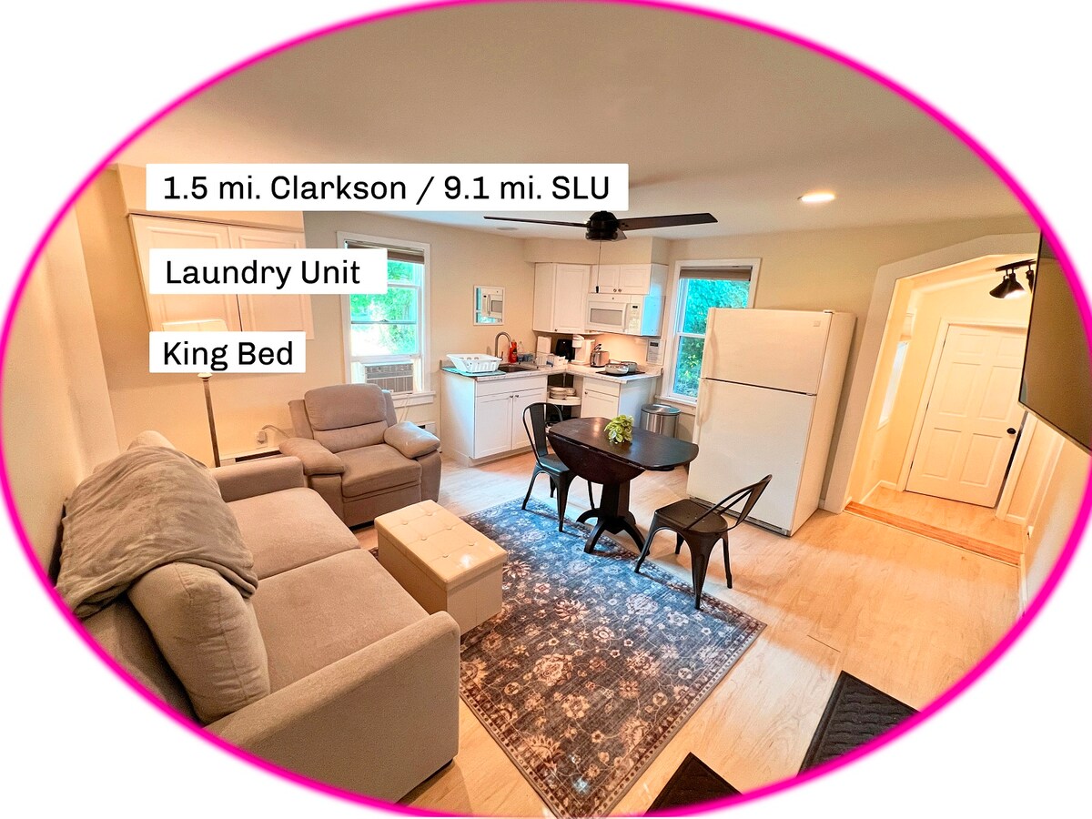 - "Everything was clean, there were very helpful instructions, and the place was charming. A perfect place to relax after working on site at a client. Thank you!" - "Nicely furnished, large kitchen, dining and living space. Lovely bedroom. First floor unit. Clean and comfortable." - "This cozy apartment was perfect for our weekend getaway in Potsdam. Two friends and I visited for an alumni weekend at Clarkson and found this to be the best place in town to stay! Much more space than a hotel and more convenient to downtown than most properties in the area. We were pleased with the cleanliness of the space and the professionalism of the hosts. We hope to stay here again on our next trip to Potsdam!!"