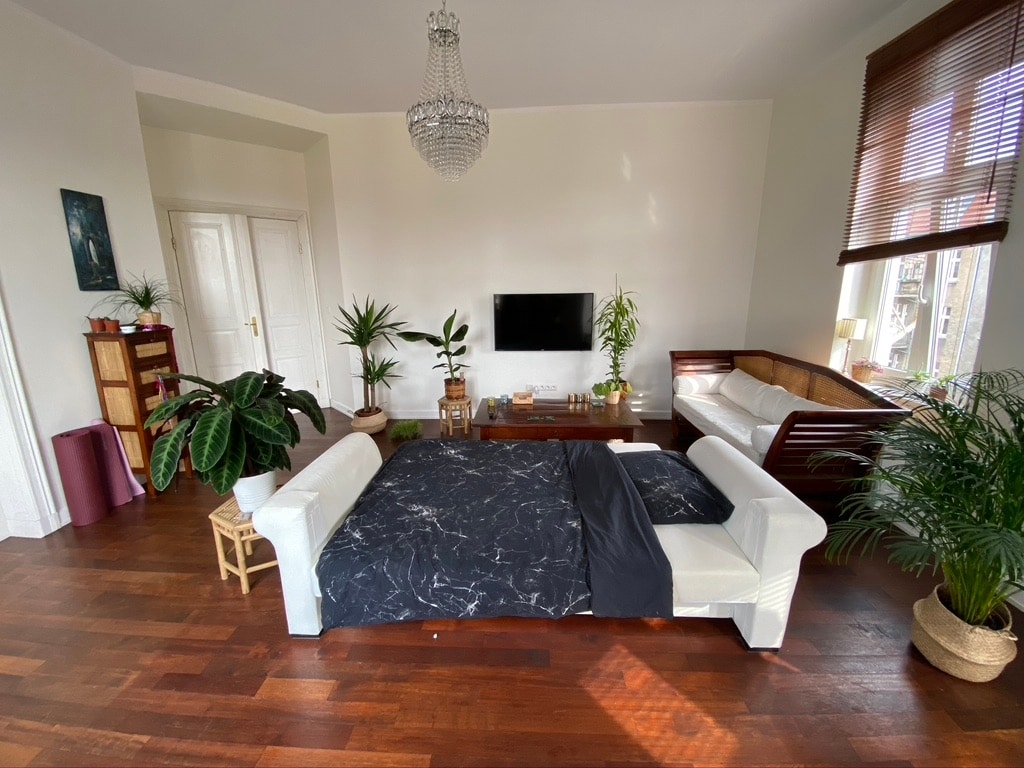 The room is my living room so there is no closet but it’s big and comfy and you will have your own privacy - it will be only to your disposal during your stay.