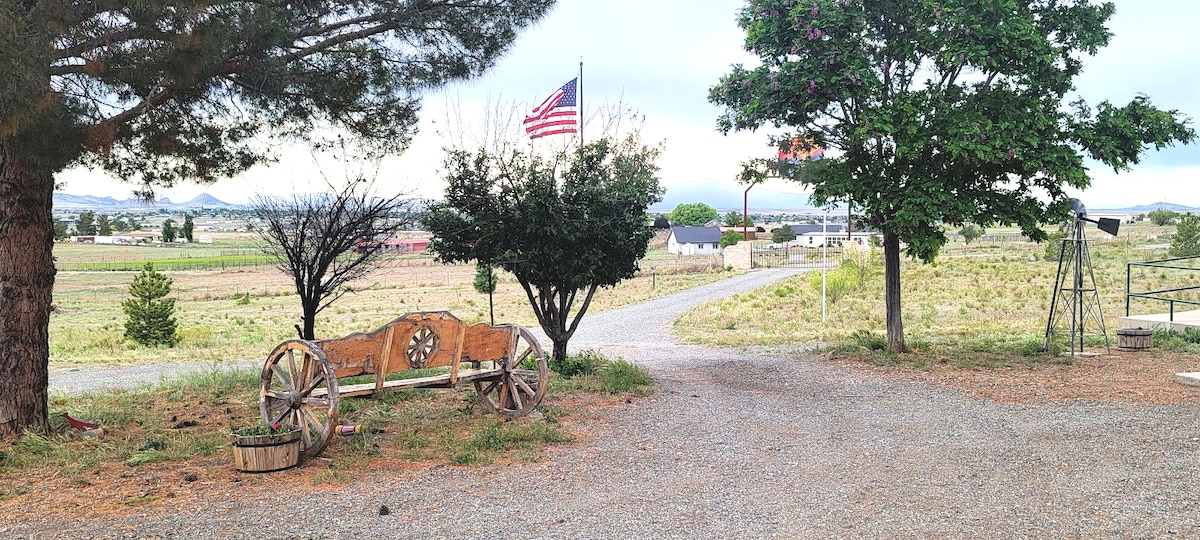 solid oak king size custom murphy bed, new rocker recliners, 65" oled smart TV with Blue tooth sound system, new refrigerator/ ice , duel perpous coffee maker, custom solid burlwood table, bar chairs, intranet , huge bathroom, american bidet toilet, huge walk in shower, washer / dryer, iron, steamer, outdoor grill and table, full game room and gym acess, library. peaceful , quiet 10 acre ranch surrounded by Prescott valley minutes from all that the Prescott area has to offer. Welcome home!