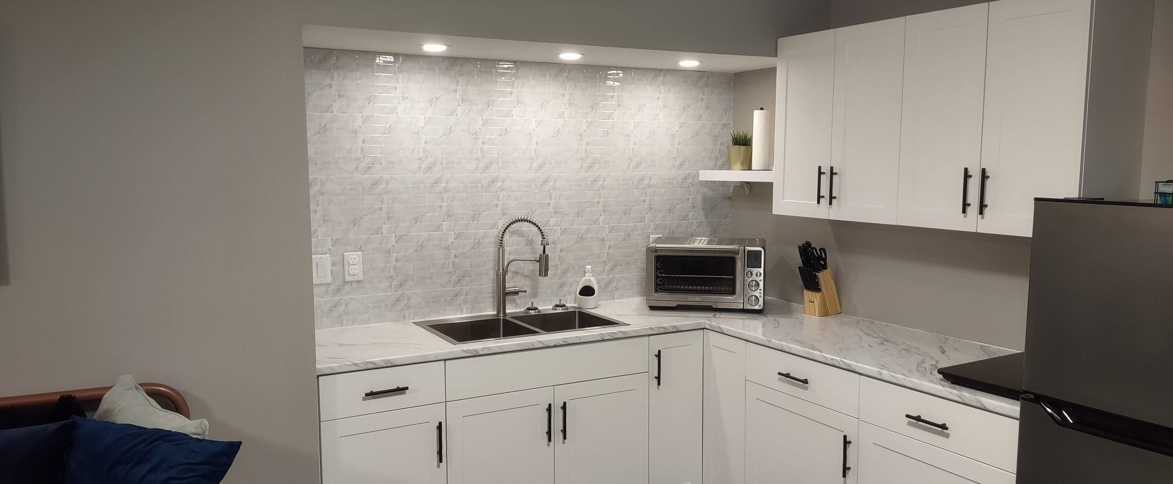- "Beautiful fully furnished basement suite, private entrance, driveway parking, in suite laundry "