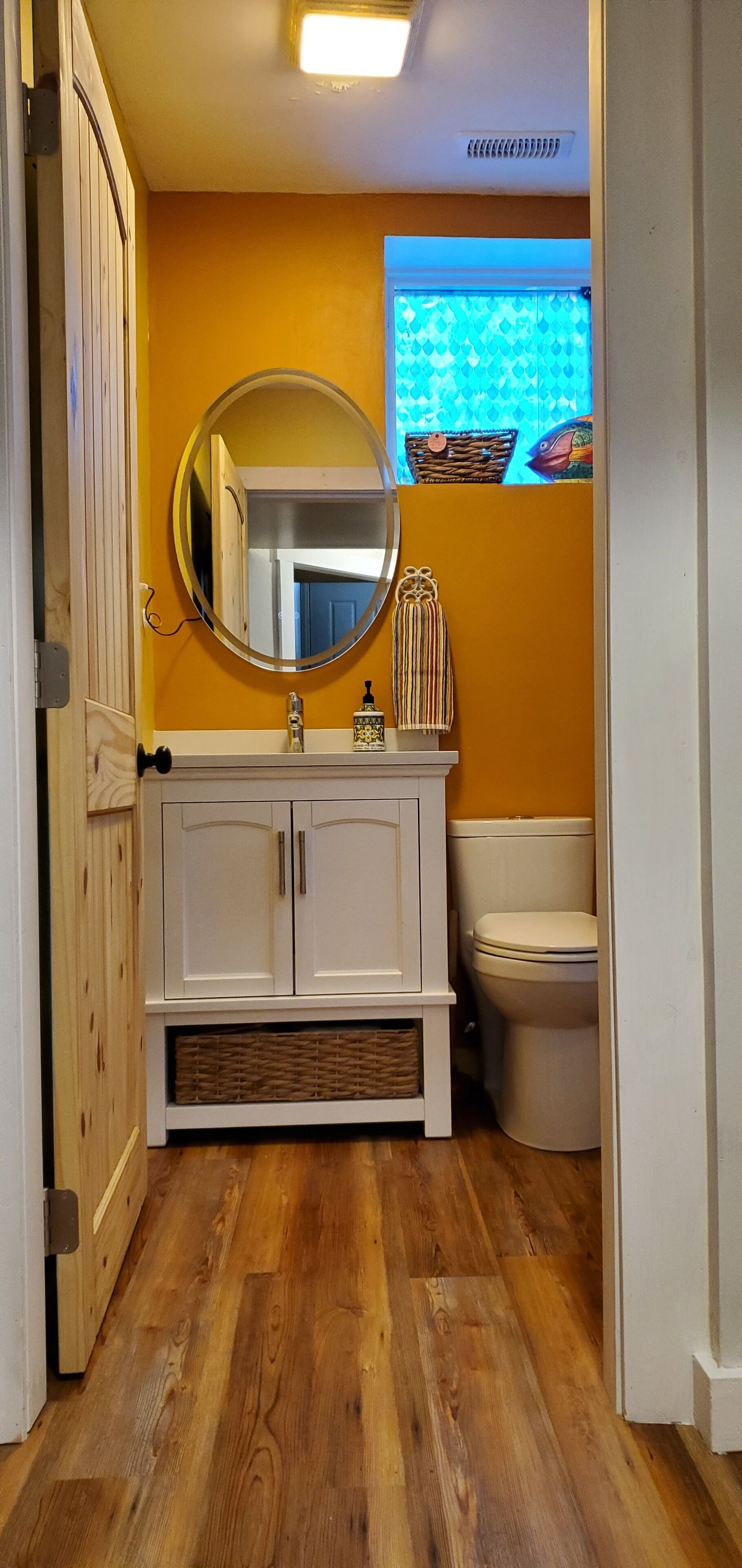 2 bedroom bottom level of the house. One of the bedrooms has a full size work desk.