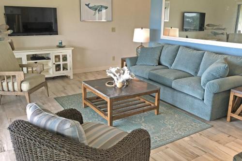 This unit sleeps up to six guests with a king bed, a queen sleeper sofa, and two twin beds in the loft area which is easily accessible with a newly designed staircase. The unit has a new powerful 15,000 BTU window AC unit as well as two new remote control ceiling fans for those rare warm days.