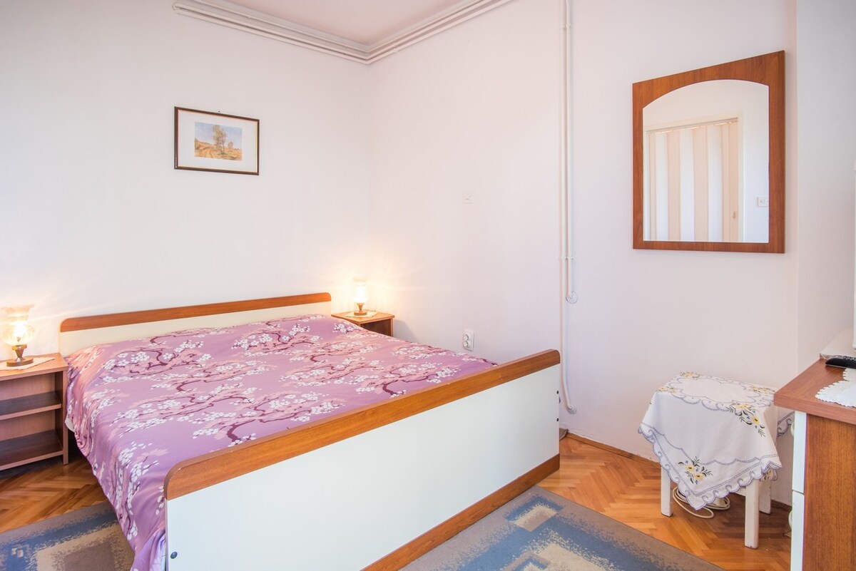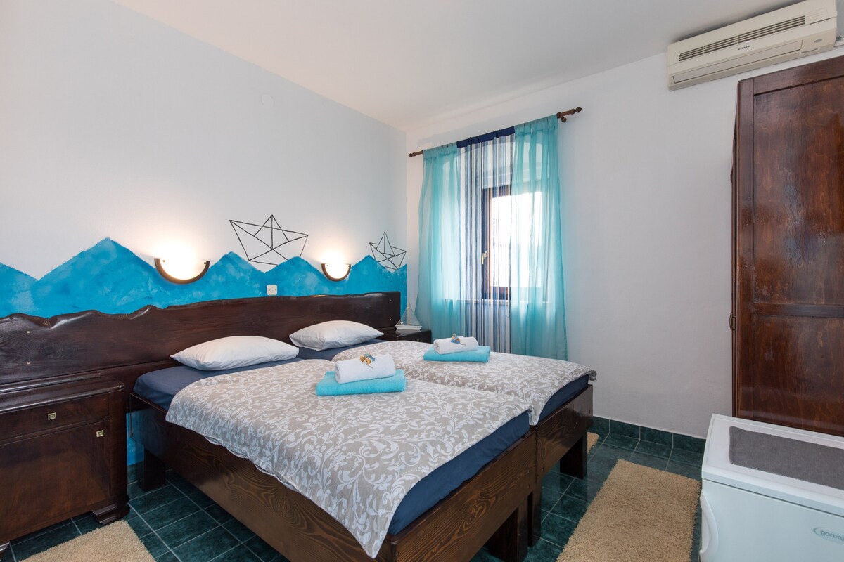 Apartment Galun is located on the second floor of the house and it is named after the little Island visible in the horizon. The apartment is decorated with lots of fun blue details symbolizing the sea. It is spacious, newly equipped and comfortable. Besides the balcony with an open sea view, apartment Galun offers two bedrooms, a kitchen with charming and cozy dining area and a bathroom. Just right for a perfect relaxing vacation.