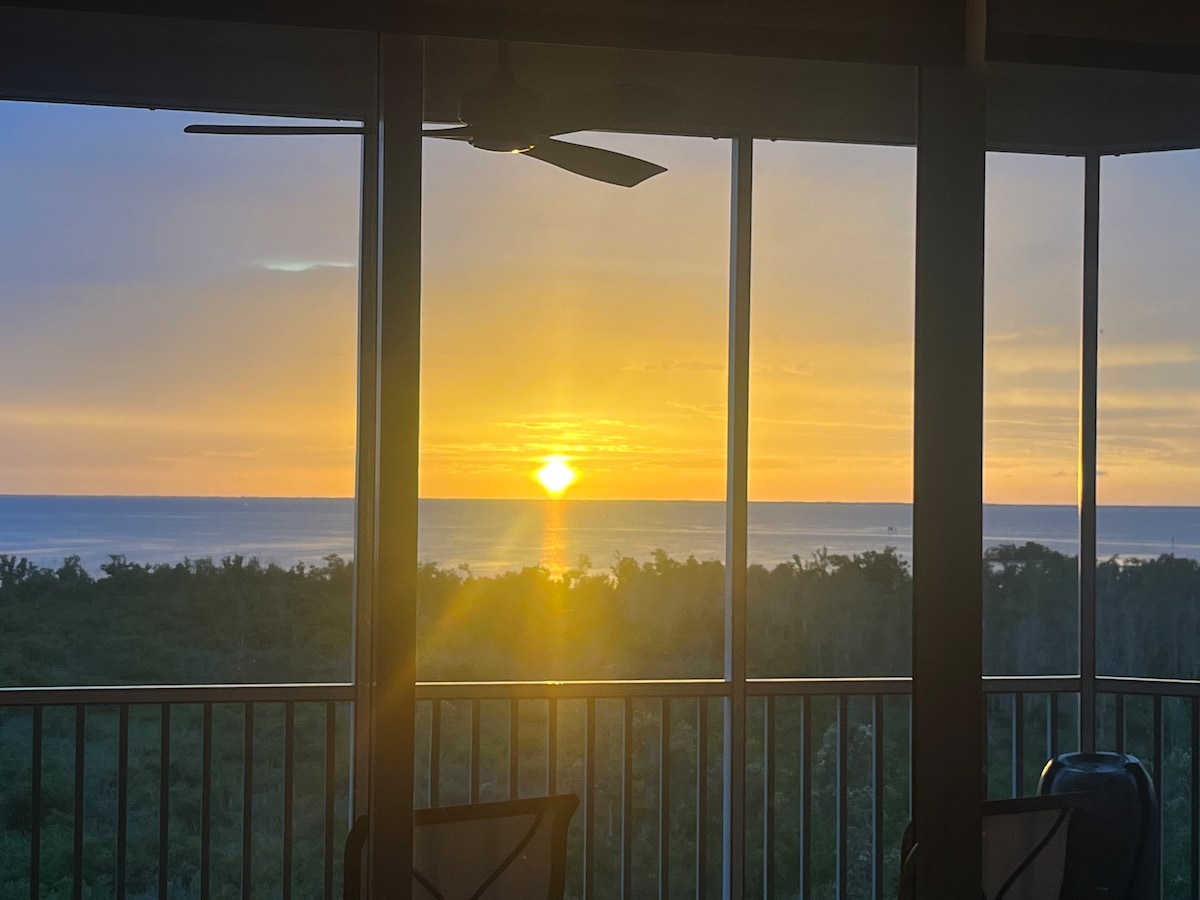 Front of unit sees the sunrise, rear (lanai) sees the sunset